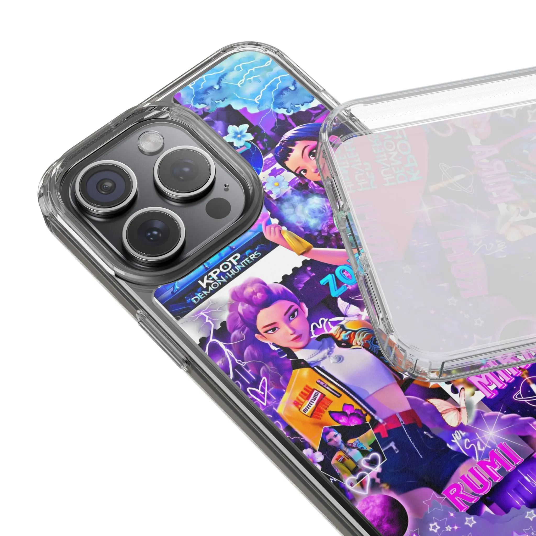 K-Pop Demon Hunters Collage Anime Case for iPhone 17-7 Pro Max Plus & Samsung Galaxy S25-S21 Ultra Plus - Rumi Mira Zoey Aesthetic Neon Phone Cover unisex