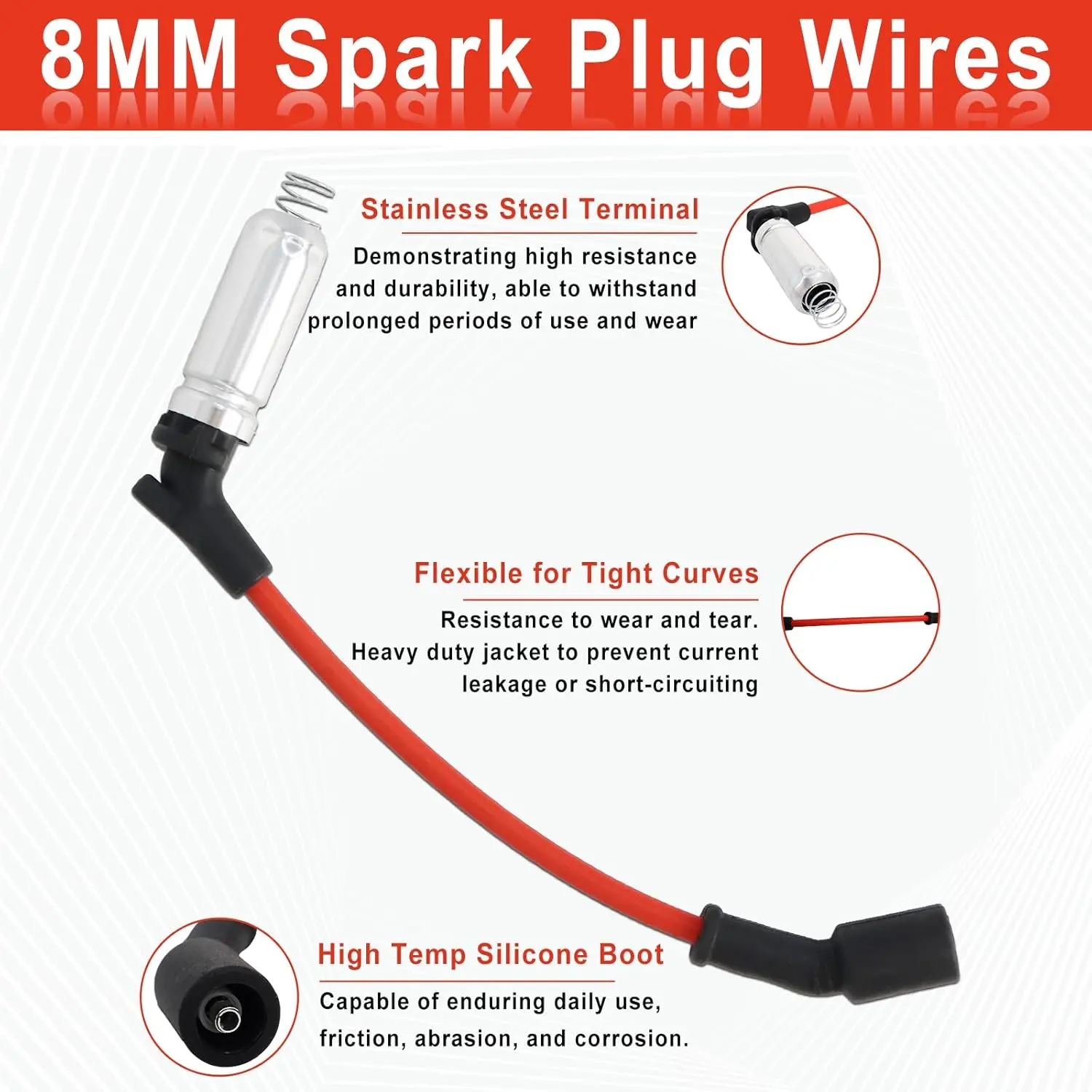 Package Inludes: 8 x 41-110 Spark Plugs, 8 x M8-48322 Spark Plug Wires.