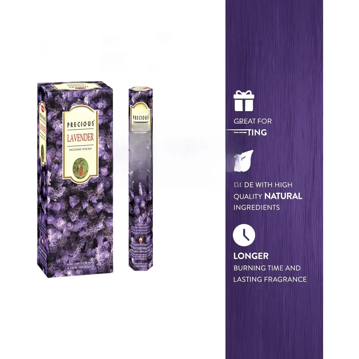 Soothing Lavender Aroma – Sweet, floral fragrance known to relax the mind, reduce stress, and uplift the spirit. Perfect for Mind & Spirit – Enhances meditation, yoga, prayer, and rituals by creating a serene environment. Long-Lasting Fragrance – Each stick burns for approx. 35–40 minutes, releasing a consistent and refreshing aroma. Natural & Hand-Rolled – Crafted in India using traditional methods with premium quality ingredients. Air Purifier & Mood Enhancer – Helps cleanse negativity, freshens up living spaces, and promotes positive energy.