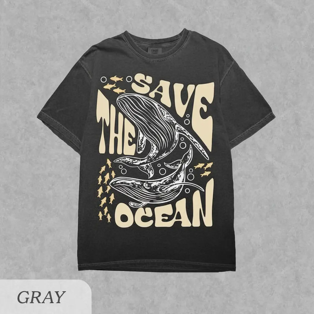 "Save the Ocean" Vintage Whale Tee | Retro Eco-Conscious Streetwear