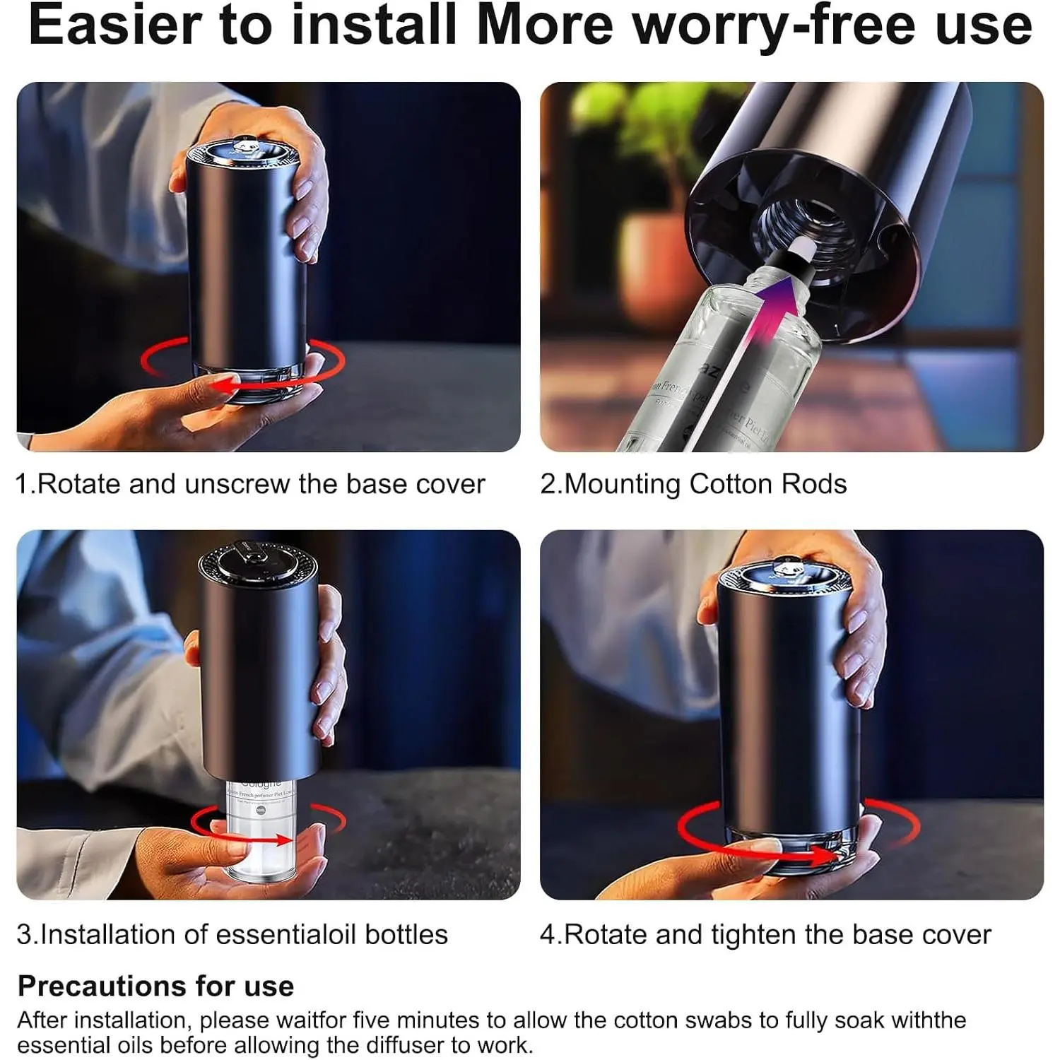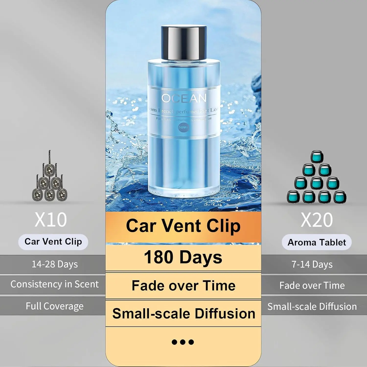 [100ml Essential Oils Refill for Car Diffuser] Car Fragrance Refill Dedicated. Our car diffuser refill, specially designed for the air freshener car, provides up to 2 months of continuous use when used for 10 hours per week in high mode. In smart mode, it can last up to 4 months, and in light mode, it can last up to 6 months. Its enduring fragrance means you won't have to replace it frequently, saving you both time and money. [Ever-Renewed Natural Fragrances]Our car air freshener essential oil refills are crafted from natural plant extracts, featuring alcohol-free and additive-free fragrances. We regularly refresh our scent selection by launching 1-2 popular new fragrances at intervals, ensuring a dynamic range that caters to diverse preferences and occasions. From classic options like Cologne, Ocean, Sauvage, Azure, and British Pear & Fressia to the latest trending aromas, there’s always a scent to match your mood and moment. [Natural Without Additives]Our car air fresheners is made with natural plant extracts and contains natural chlorophyll. and far away from headaches caused by tacky tree fresheners that make your car clean all the time. Additionally, we never use fragrances that contain alcohol or additives, ensuring that pregnant women, children, and seniors can safely use it. [Easy to Use & Easy to Install]Our car air freshener refill is easy to use, unscrew the cap of the perfume bottle, screw the replacement essential oil bottle vertically into the car air freshener. Tighten the base and wait for about 5 minutes, when the cotton core is fully soaked, it can be used without any cumbersome installation steps. [Widely Used]We provide the perfect warranty for all our product. You could also use it the office living room bathroom anywhere in your home and you could also give you friend as a gift who likes aromatherapy. If you have any other questions please contact us anytime.