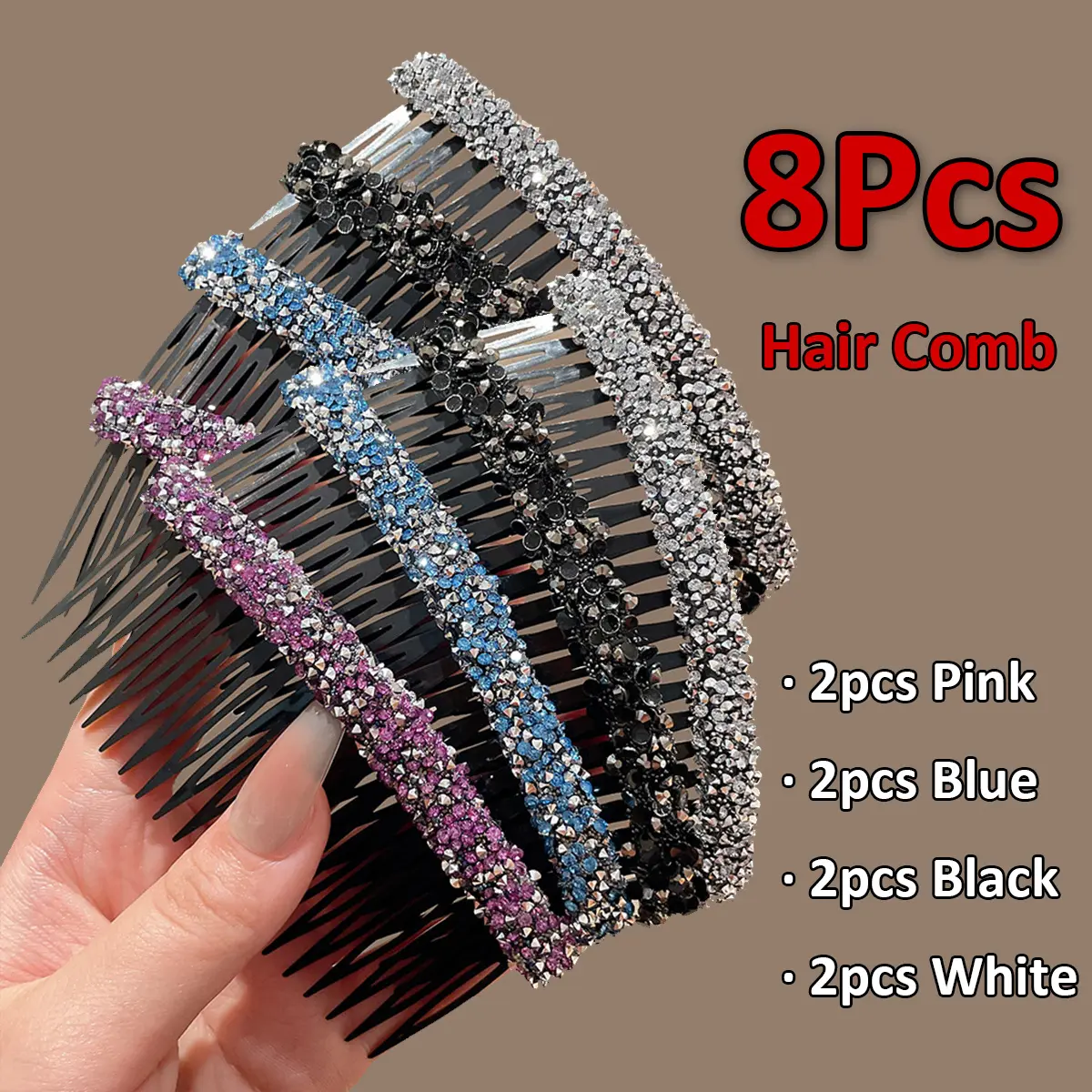 8pcs Large Retro Full Rhinestone Hair Combs Suitable for Lazy People, Anti-Slip Bangs Comb & Back of Head Hairpin for Volume, Instant Volume Boosting for Normal & Relaxed Hair, -Free Daily Styling Tool for Messy Hair