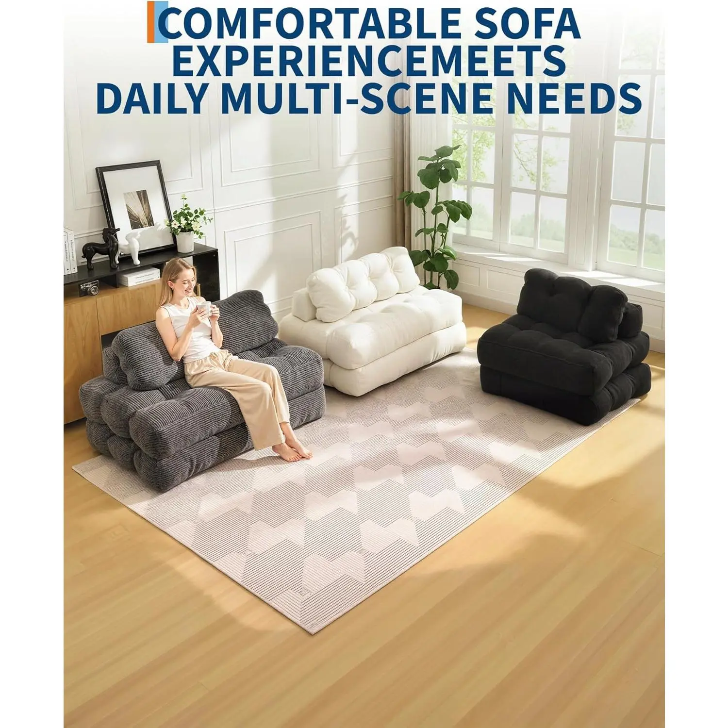 · 5. Important Unboxing Instructions:For eco-friendly shipping, your sofa bed arrives vacuum-sealed and compressed. After unboxing, simply remove the packaging and allow up to 48 hours for the foam to fully expand to its intended loft and dimensions. This patience ensures you receive the optimal comfort and size as designed.