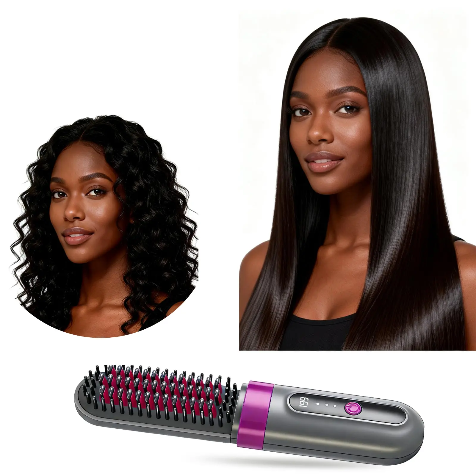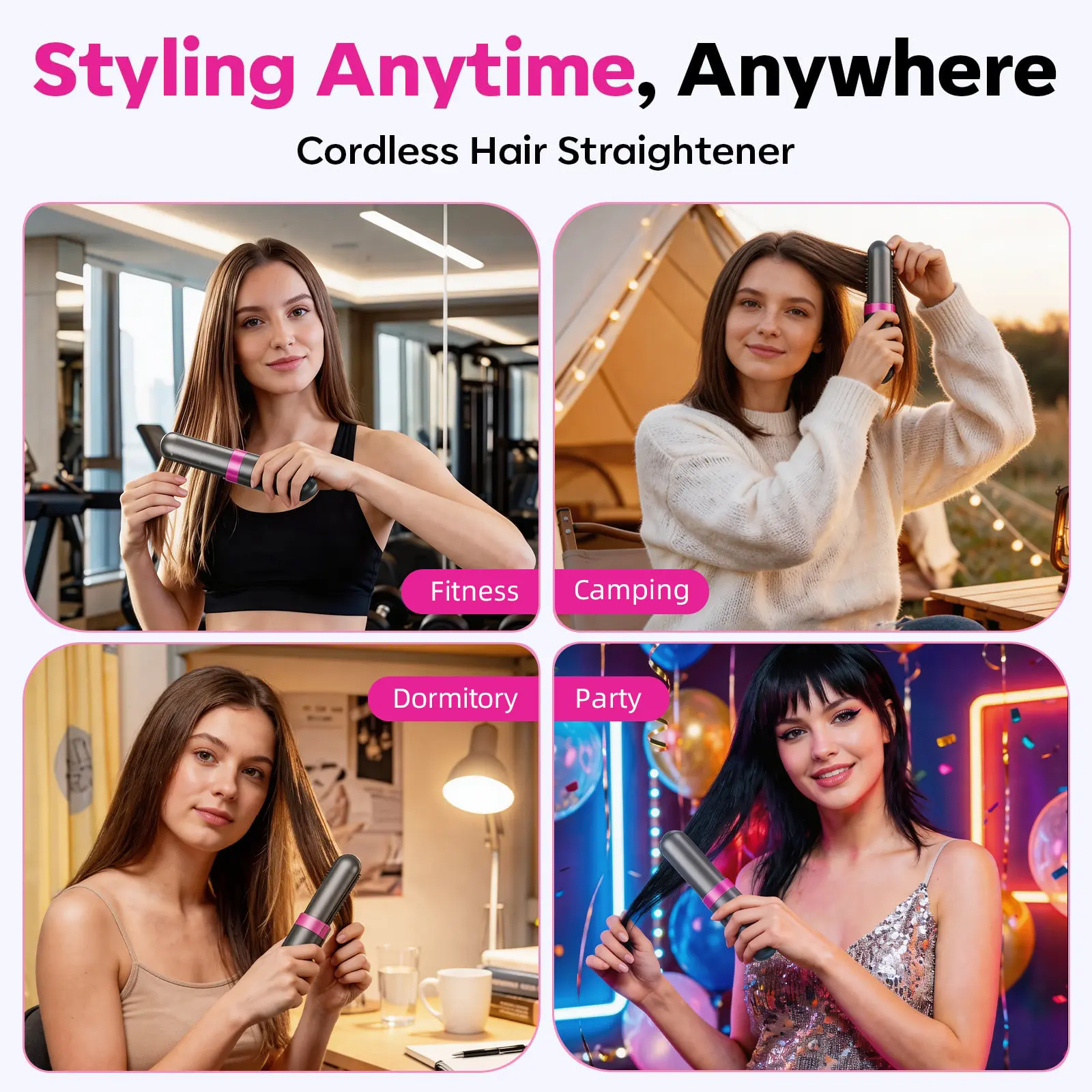 5. Cordless Hot Brush 2-in-1 Straightening & Curling 200Million Negative Ions 360° Heating Safe Mode Ceramic Coating Portable Travel-Friendly Flat Iron Plancha de Cabello
