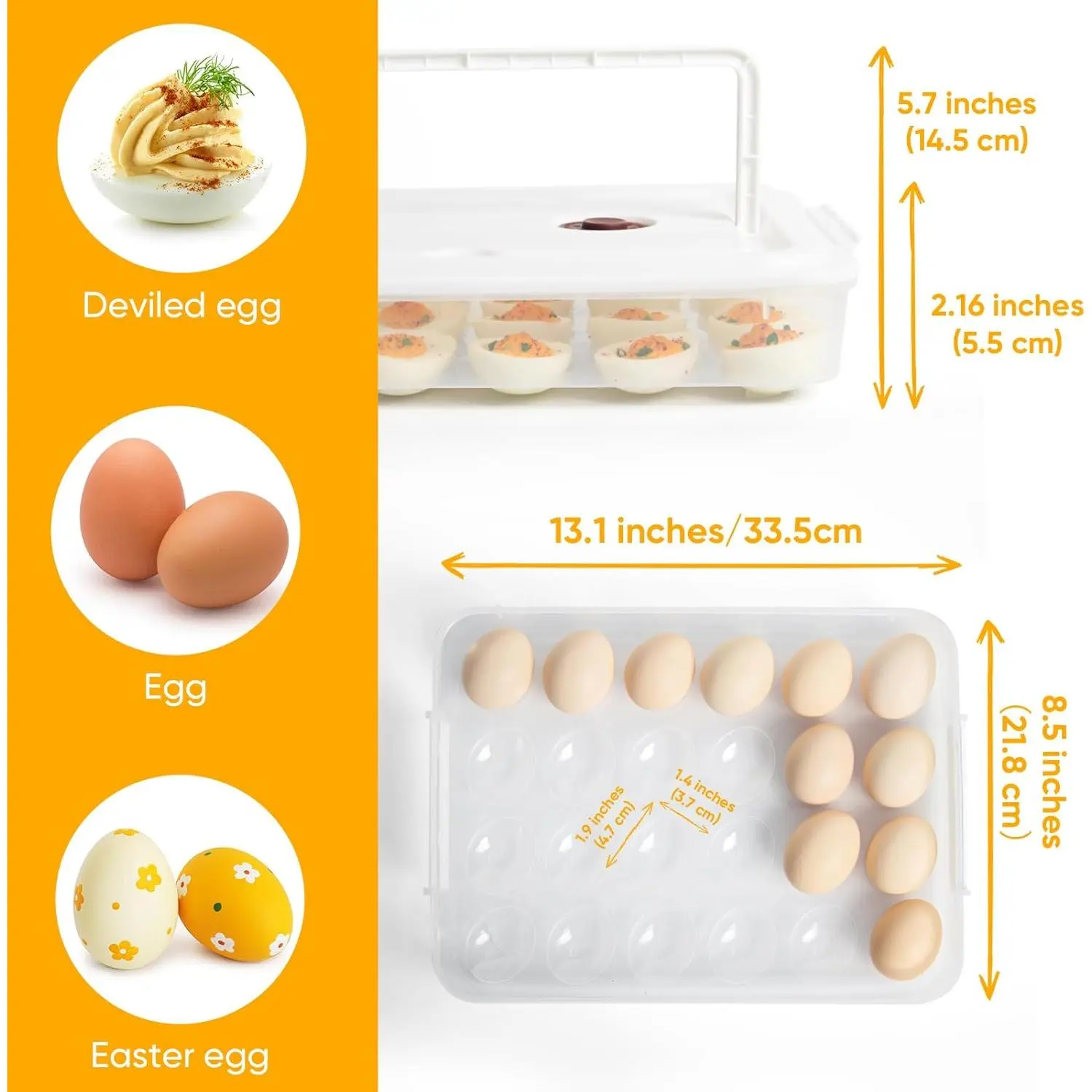 Handle Design: Convenient handle for easy transport. Extended buckle enhances stability. Your deviled eggs stay safe on the go