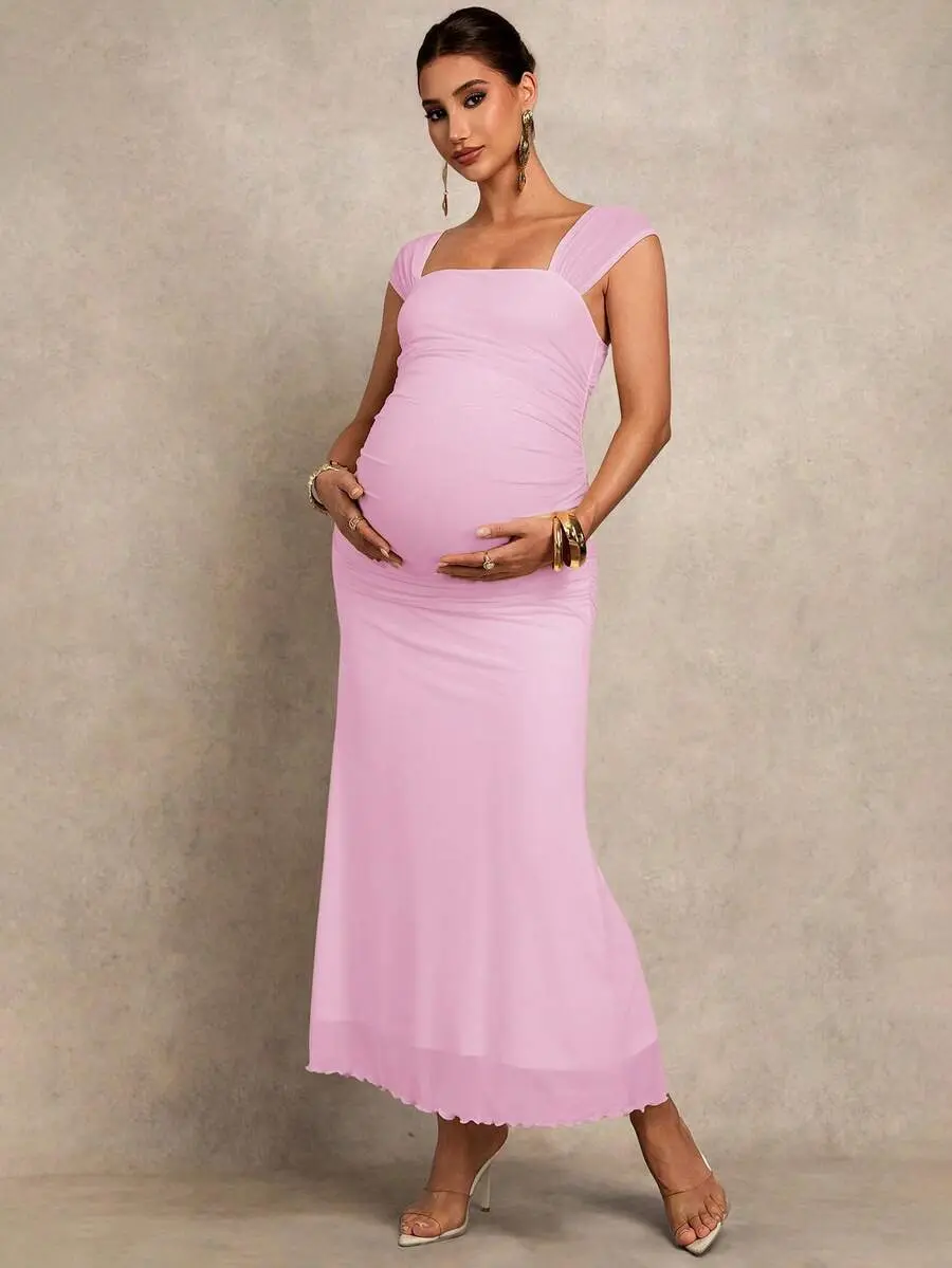 TAMALLA Pregnant Women Solid Color Pleated Elegant Party Dress