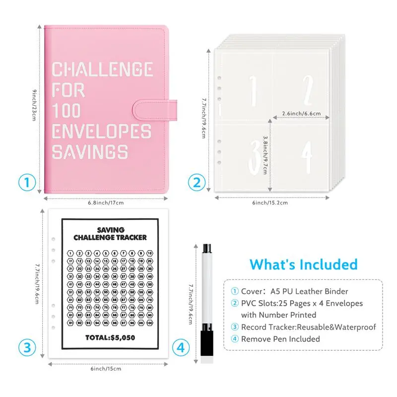 ·BEST GIFT: The 100 Envelopes Savings Challenge Binder is the perfect gift for your family. Complete the savings challenge together in a fun way! Whether you're a kid or an adult, our challenge is the perfect tool to help you build your savings and reach your financial goals.