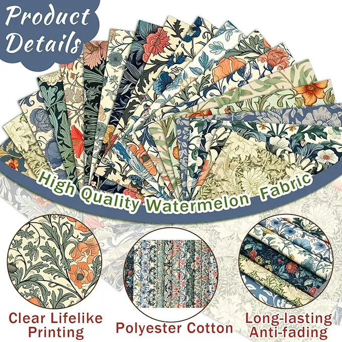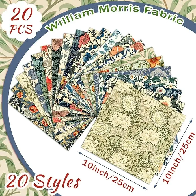 ·Supply Your Creativity: whether it's a quilting project or crafting endeavor, our pack of 20 william morris flowers fabric is your choice; Each piece measures approximately 10 x 10 inches, giving you plenty of material to work with; You don't have to compromise on quantity or quality; Instead, bask in the extravagance of having both