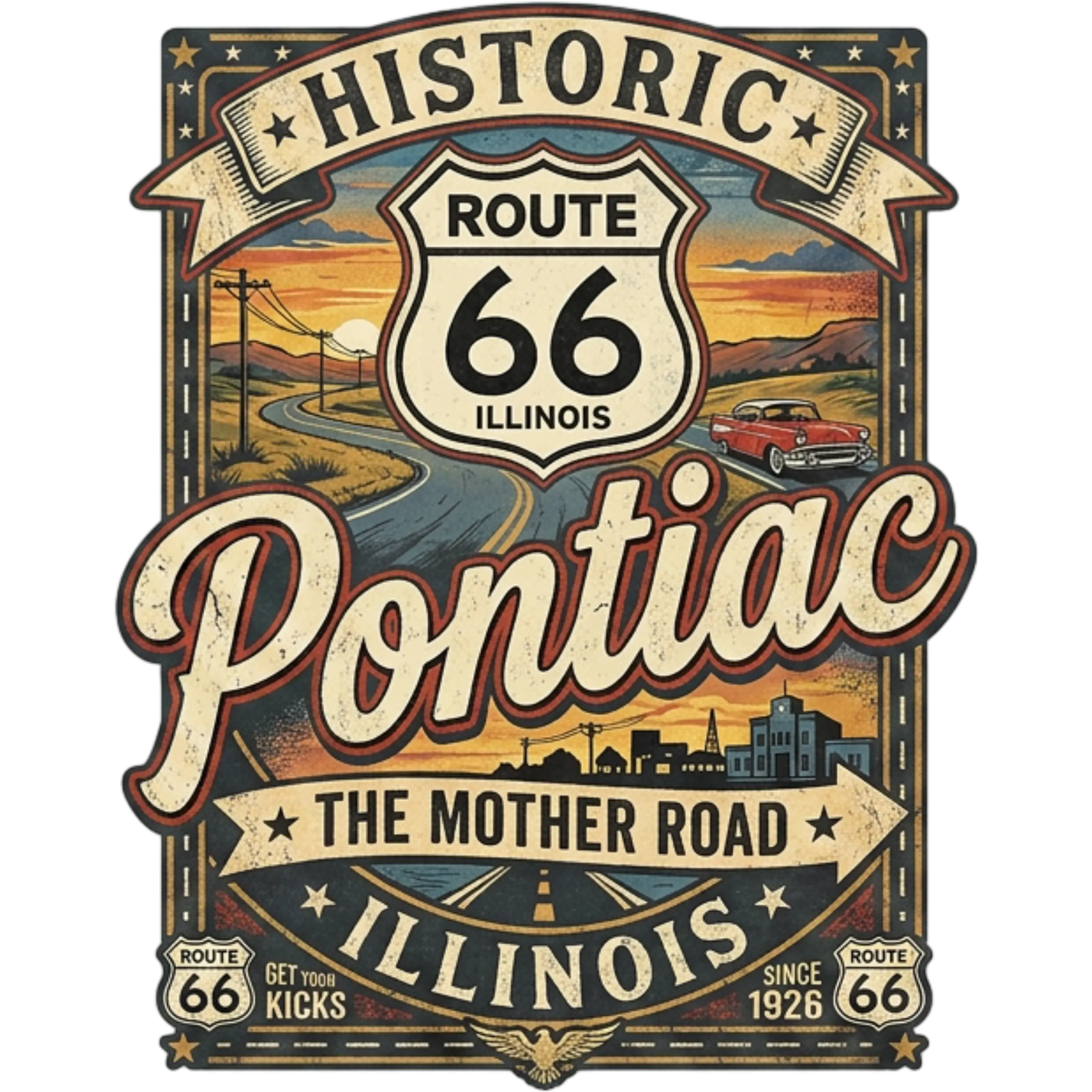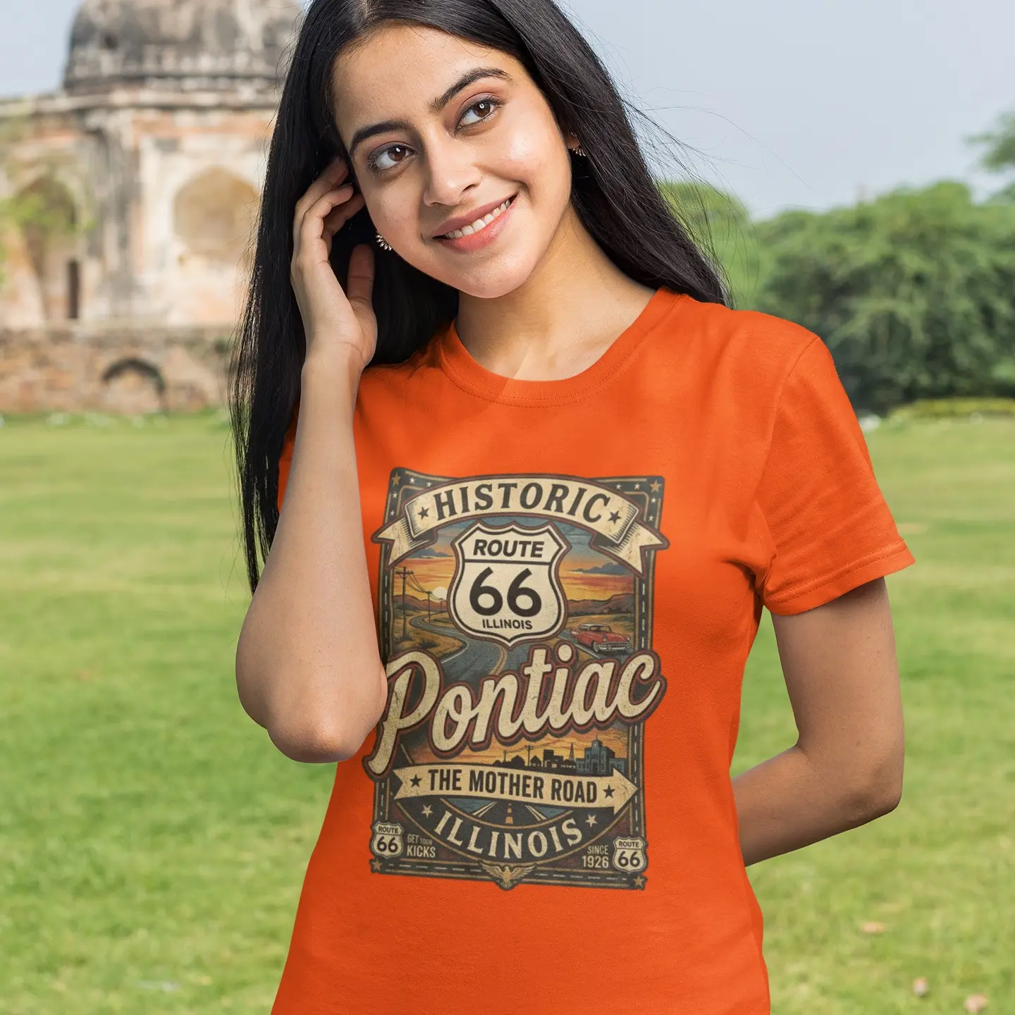 Celebrate the spirit of America’s most iconic highway with this bold Route 66 – Pontiac, The Mother Road T‑shirt. Designed for road‑trippers, classic‑car lovers, and anyone who feels at home on the open road, this tee brings vintage Americana vibes with a clean, eye‑catching graphic that stands out in every outfit. Soft, comfortable, and perfect for cruising, traveling, or repping your hometown pride — this shirt is made for the ones who live life one mile at a time.