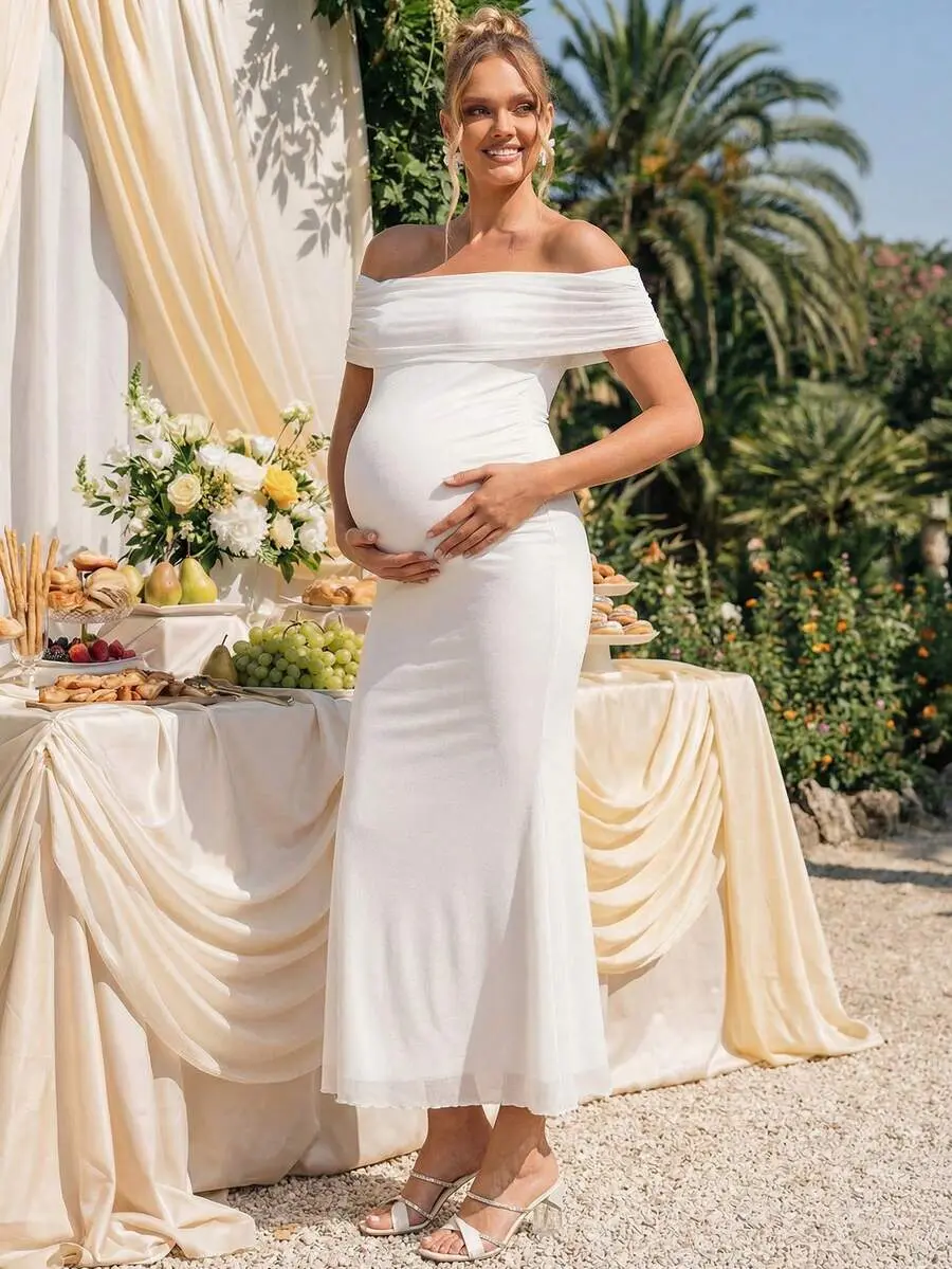 TAMALLA Elegant Party Solid Color Off Shoulder Mermaid Maternity Dress,Gender Reveal Dress,Maternity Dress, Baby Shower Dress For Party,Party Outfit,Wedding Guest Dress For Women,, Wedding Guest Dress