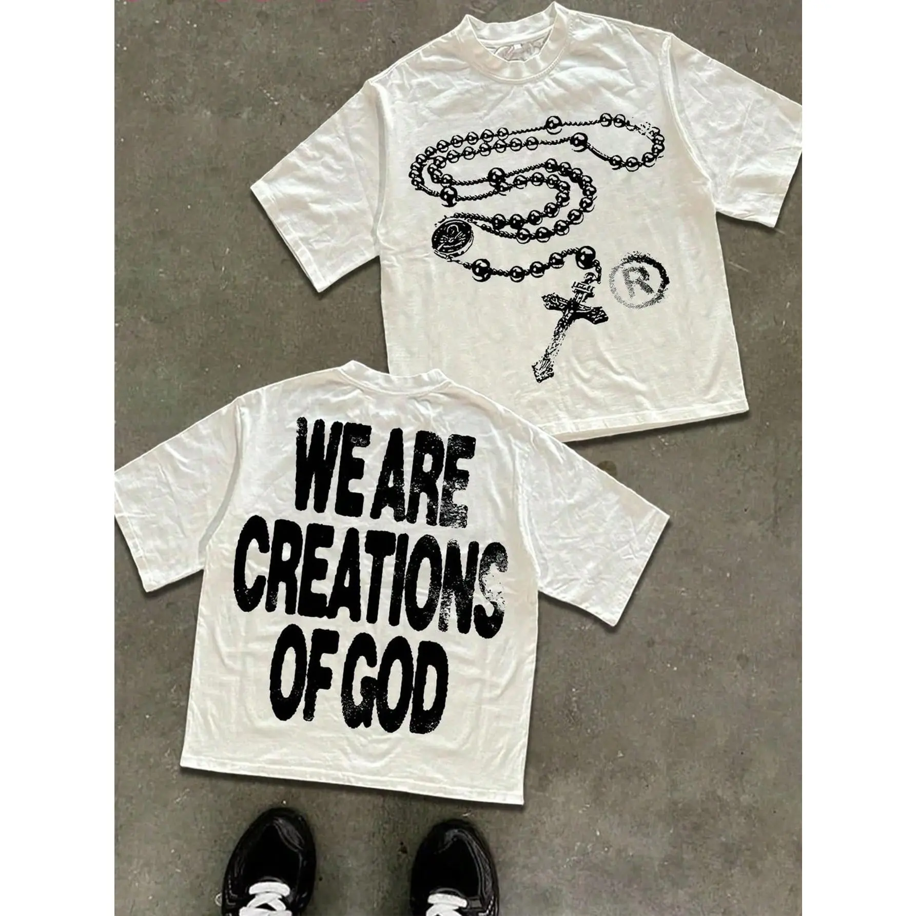 High - Street Religious - Themed Tee With 'We Are Creations Of God' Slogan Printed T-Shirts, T Shirt Unisex T-Shirts