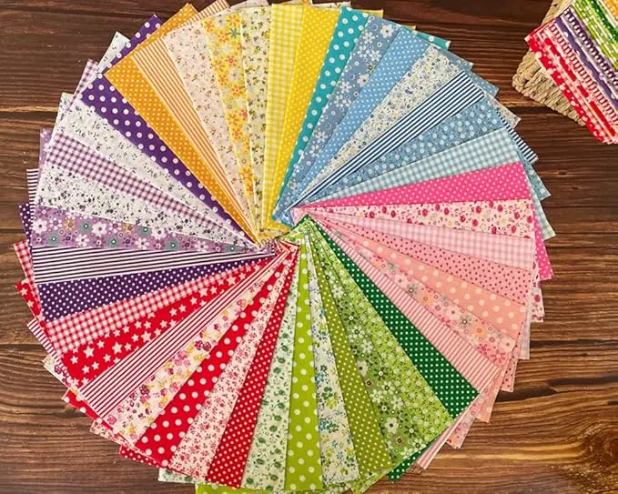 150 Pcs Cotton Craft Fabric Bundle Squares, Multicolored Abstract Pattern, 4 x 4 Inch, Pre-Cut Quilt Squares