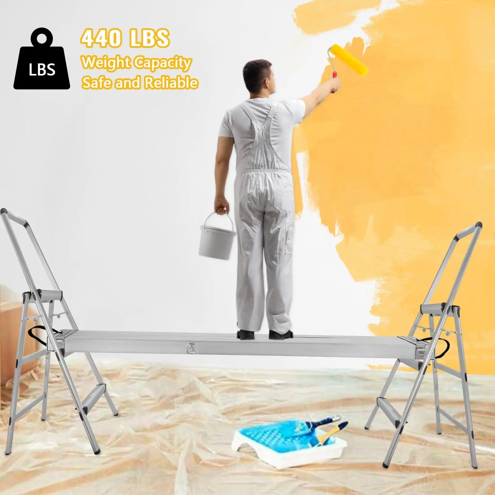 Heavy-duty reinforced aluminum construction supports up to 500 lbs, safely accommodating one or two users for painting, repairs, or installations.