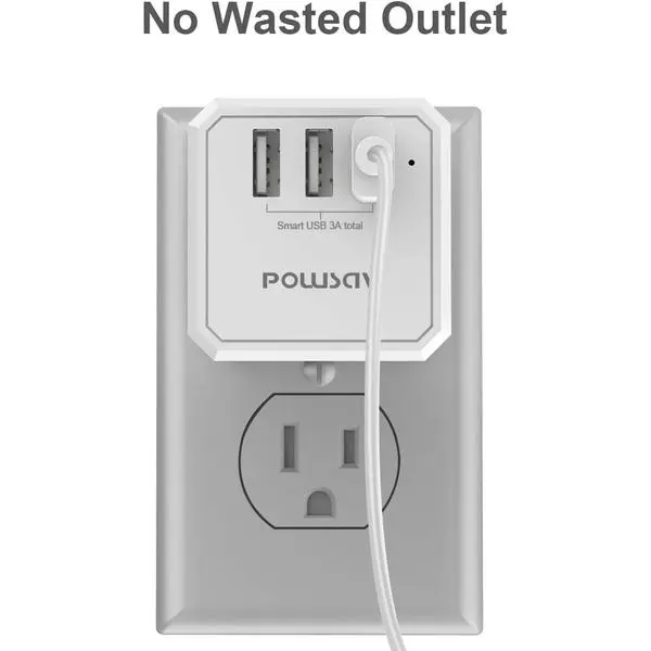 ·USB Plug with 3 Ports: 5V 3.0A shared rating; high-speed USB ports automatically detect charging devices and deliver optimal charging speed, up to 2.4A per port.