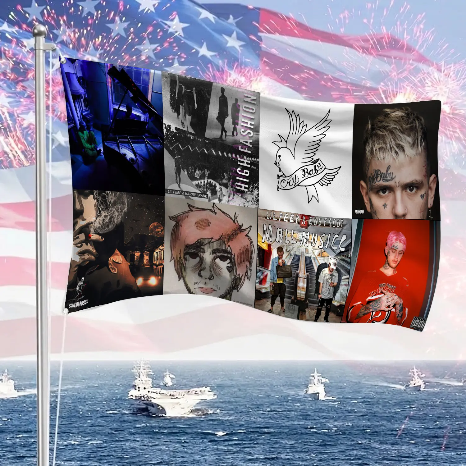 Vintage Lil Peep Album Collection Tapestry, Emo Rap Artist Wall Hanging Decor, Aesthetic Retro Music Art Banner, Bedroom Studio Wall Art, Gift for Fans