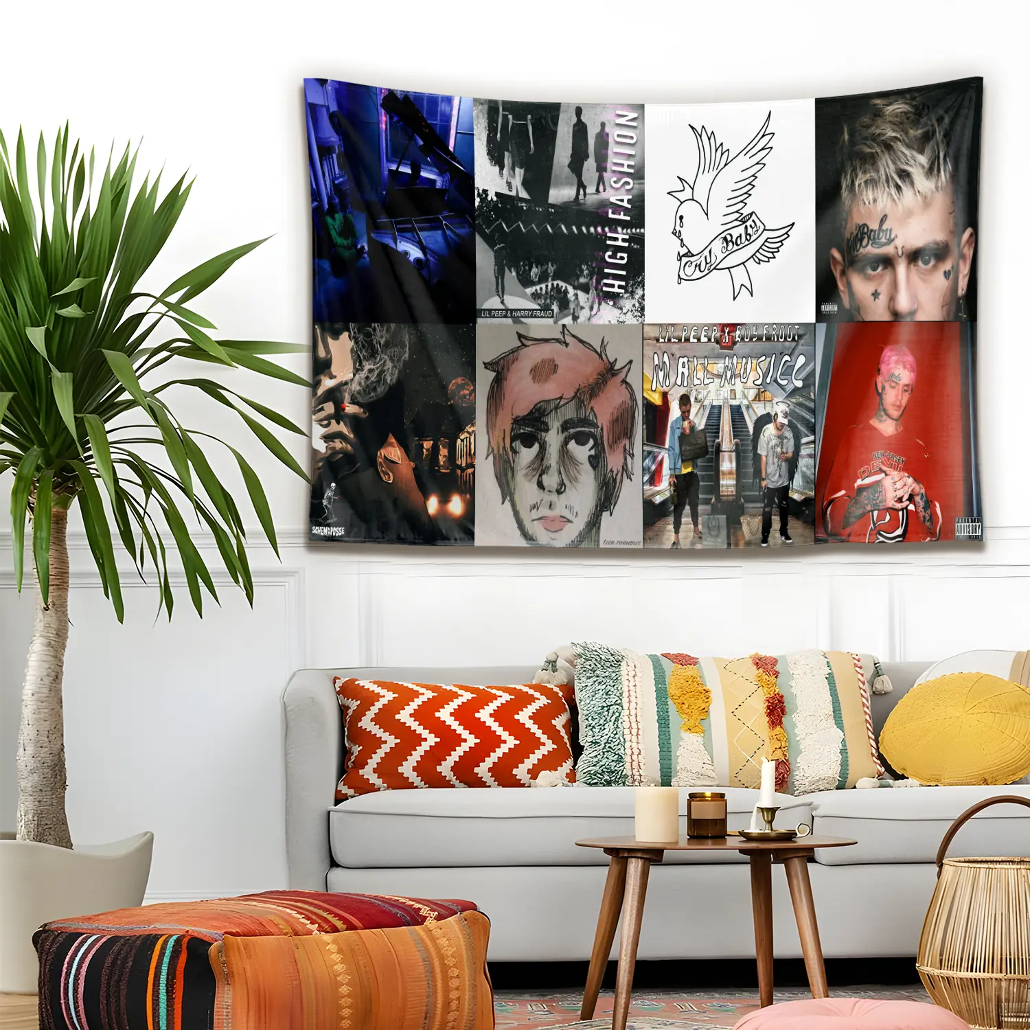 5. Vintage Lil Peep Album Collection Tapestry, Emo Rap Artist Wall Hanging Decor, Aesthetic Retro Music Art Banner, Bedroom Studio Wall Art, Gift for Fans