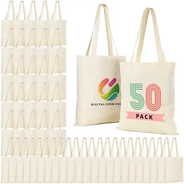 • 50 Pack 13x15 inch tote bags are ideal for small businesses. Print trendy patterns for resale or logo-branded promo gifts. They also work as event souvenirs or student craft materials. Great for bulk creative use.