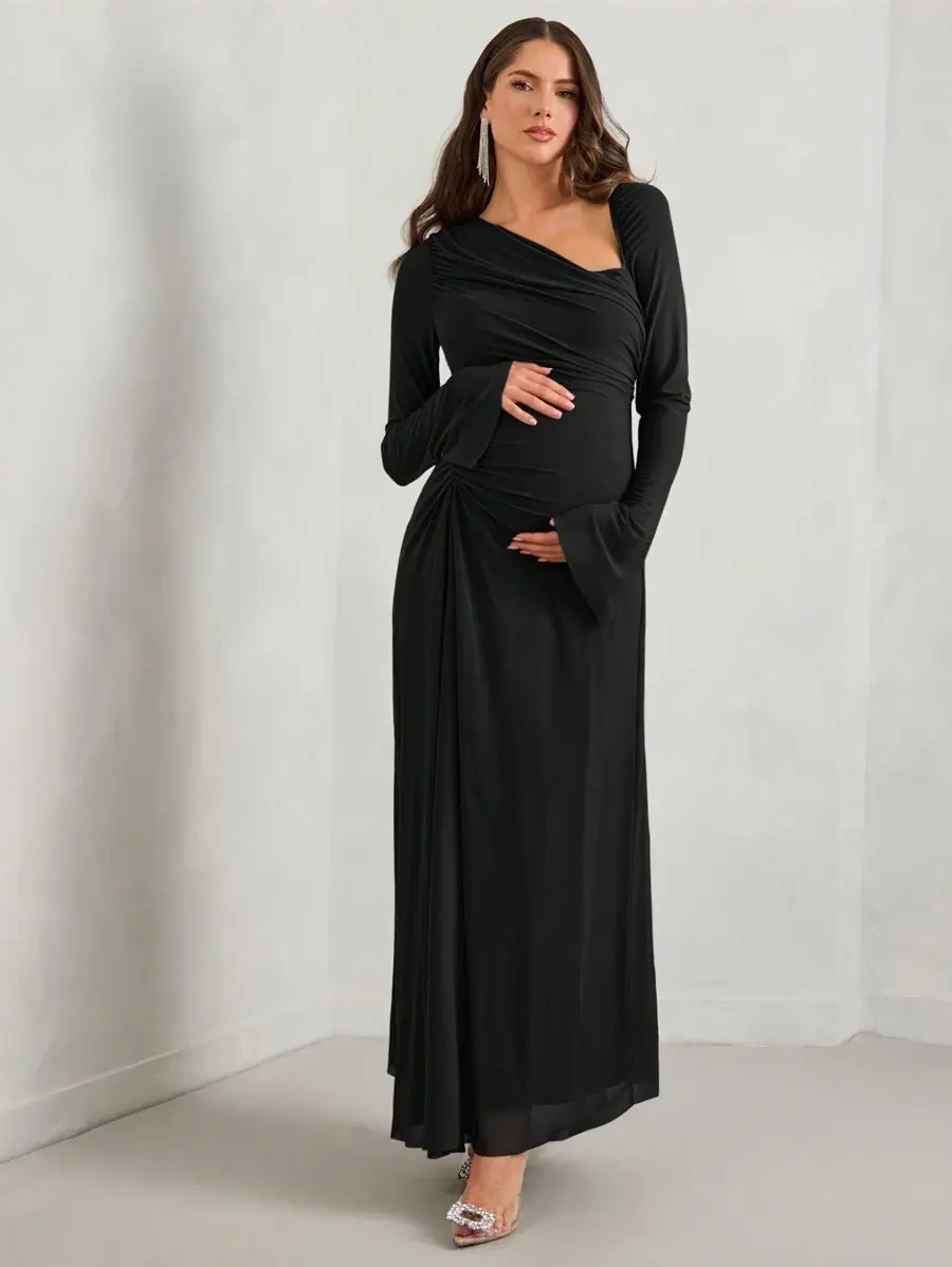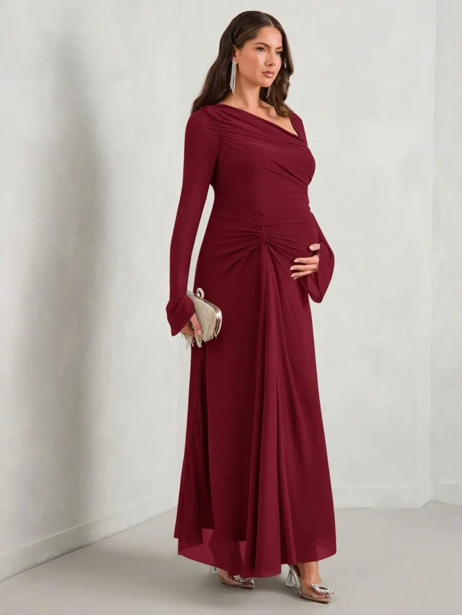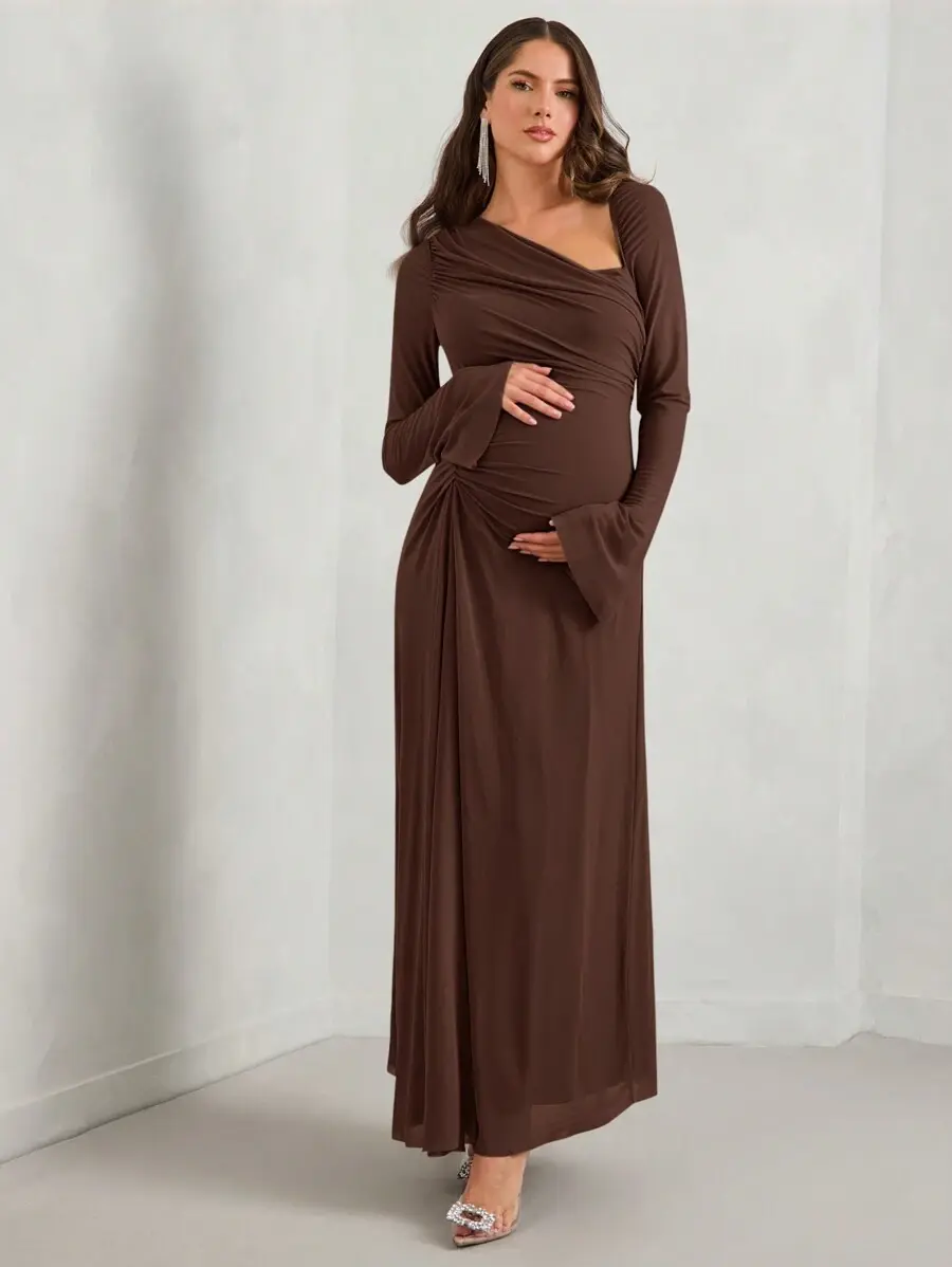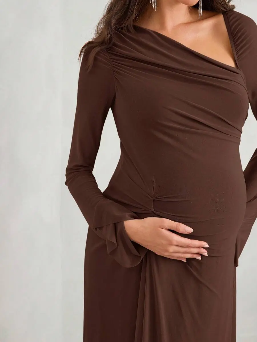 ELARA Autumn Women's Fitted Elegant Maternity Dress