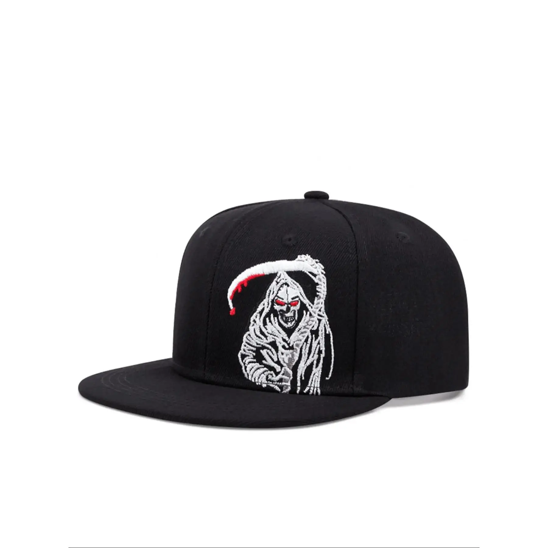 This cap features a striking Grim Reaper embroidery, perfect for street style and hip-hop fashion. The skull decor adds a trendy touch, making it a standout accessory. The design is bold and eye-catching, ideal for those who want to make a statement.