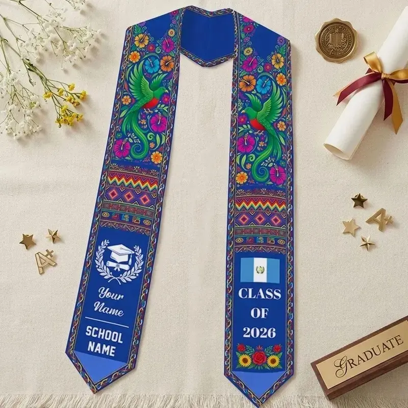 Personalized Guatemalan Graduation Sash 2026, Custom Graduation American Flag Stole, Guatemalan Graduation 2026