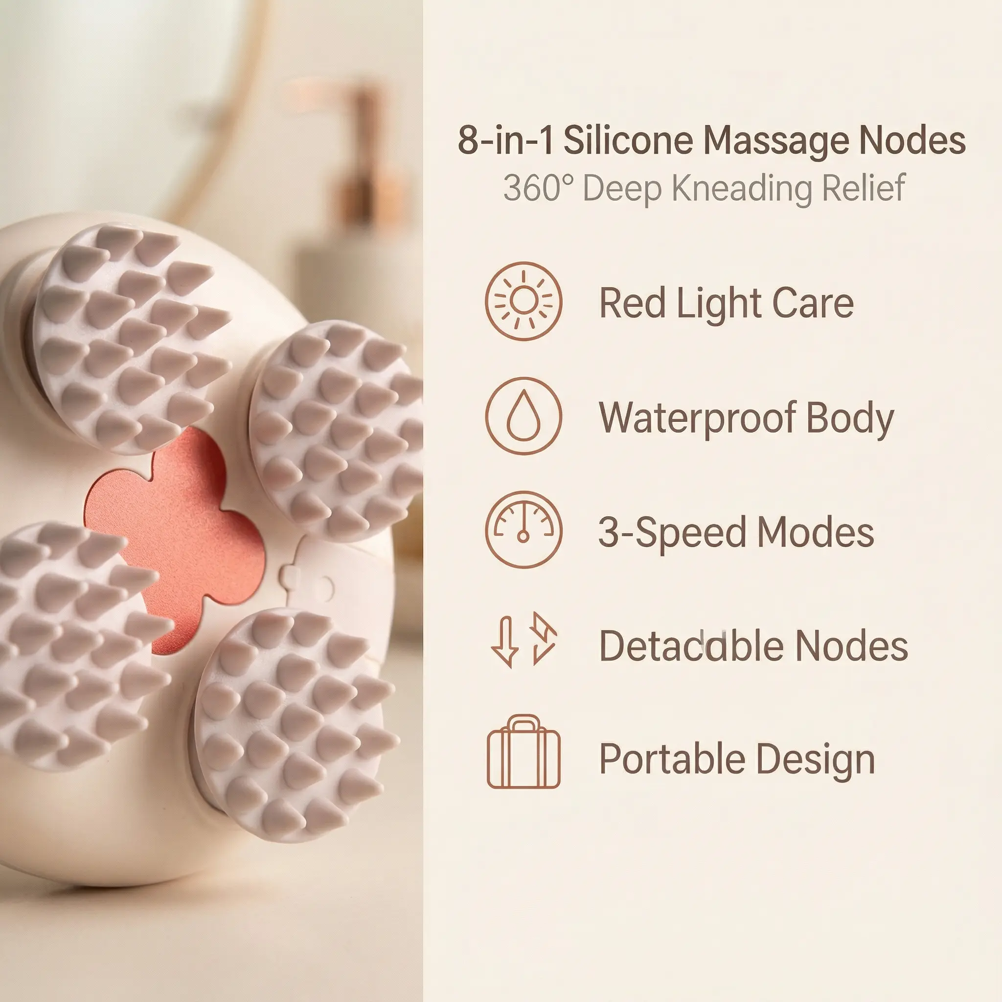 Cordless Scalp Massager HairGrowth with 3 kneading Modes, Waterproof HeadMassager with 8 Claws for Deep Cleansing,HeadScratcher,Body Massager for Stress Relief, CatMassager