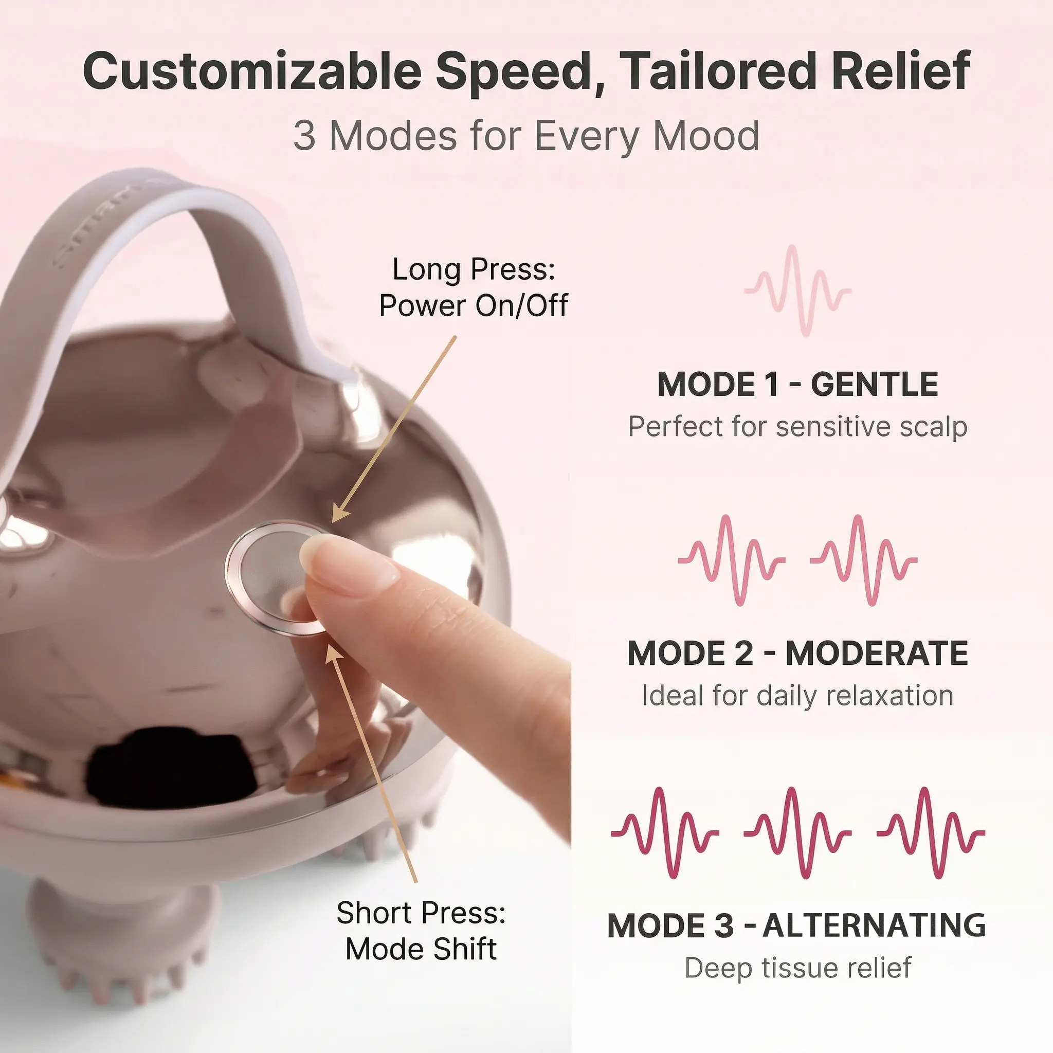 Experience stress relief with this versatile massager. It's not just for the scalp; it's a body massager too. The 3 kneading modes cater to different needs, providing a relaxing massage. Ideal for those seeking a holistic approach to wellness. Enjoy the benefits of a deep cleanse and stress relief in one device.