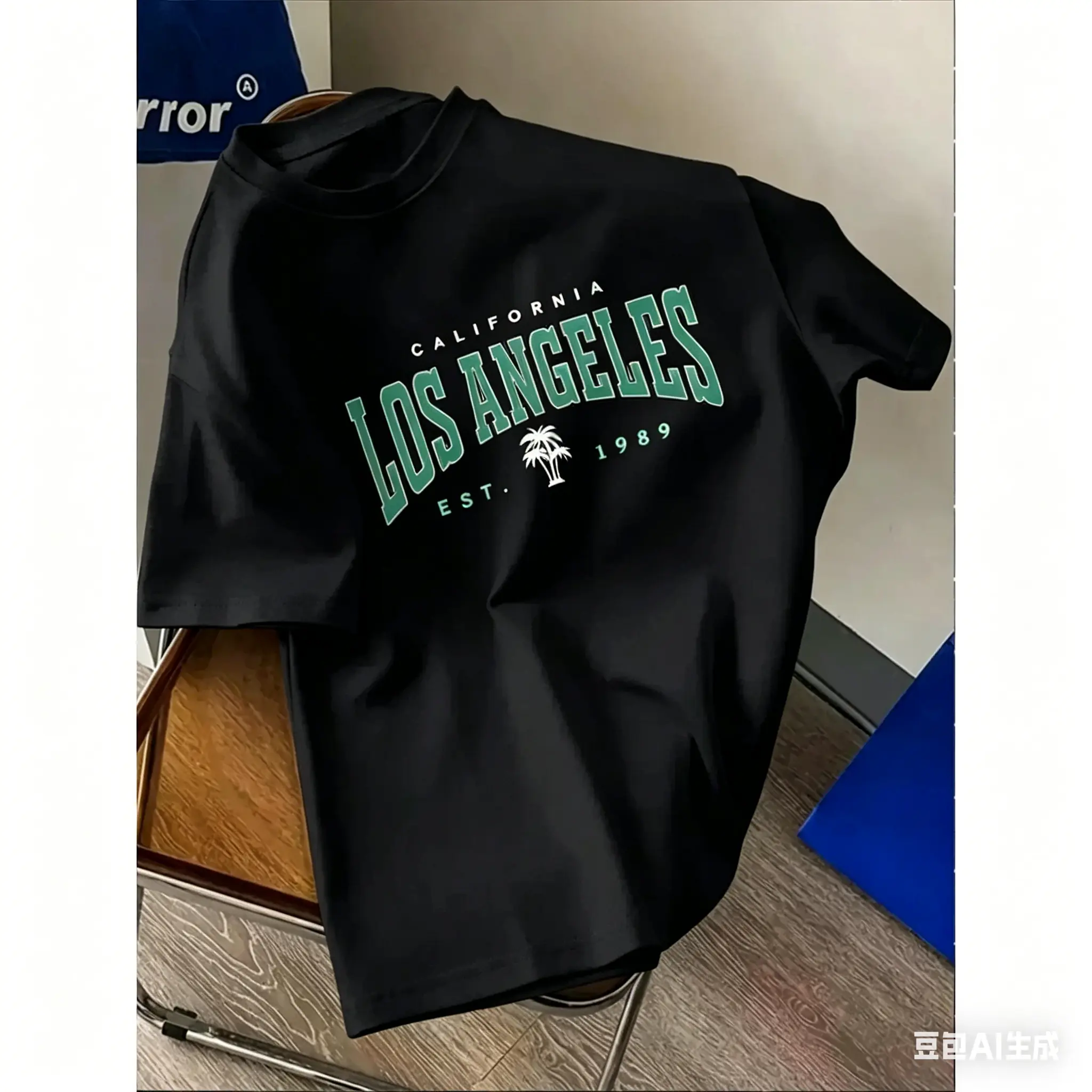Simple Design, Palm Tree Element, Trendy Fashion Round Neck Short Sleeve, Trendy Brand Fashion, Outdoor Street Style, Suitable for Home and Travel, Comfortable Fabric, Men's Short Sleeve Top, Spring Summer Men's T-Shirt Streetwear Casual