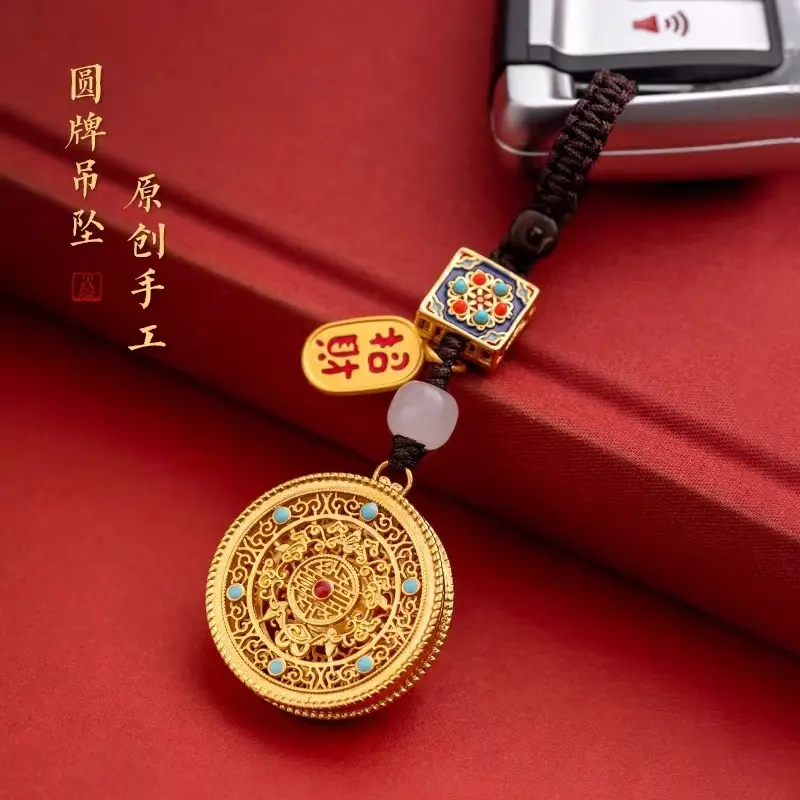 Tibetan Tantric Pendant of China, 'Chan' Pendant ,Chinese-style car hangings, key chains, ancient style, gold five-blessing coins, for ensuring safety, hangings, for men, for women