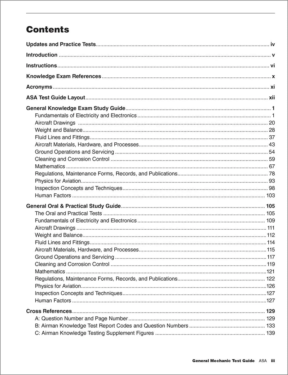 This ASA Aviation Mechanic General Test Guide includes the figures from the FAA Airman Knowledge Testing Supplement so you’ll be familiar with the information you’ll be issued at the testing center. You can count on ASA to provide you with the latest changes in the FAA Knowledge Exams through a free email subscription service and updates. ASA’s Test Guides are the aviation mechanic’s best resource for successful test-taking.