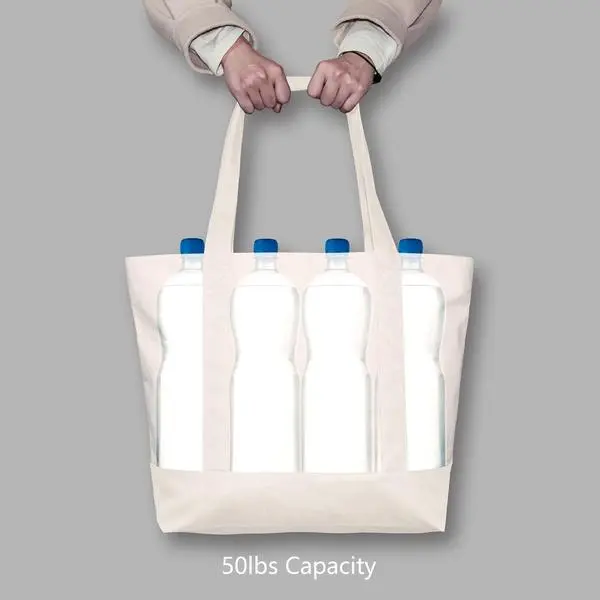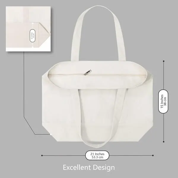 ·Dimensions: 21" x 15" x 6". Made from 100% 12oz cotton canvas. Features an 8" x 8" external pocket for small items. Top zipper closure ensures safety. Handle: 1.5" W x 25" L, easy to carry or sling. Dense thread and exquisite workmanship. All seams are reinforced for durability. 🛍️