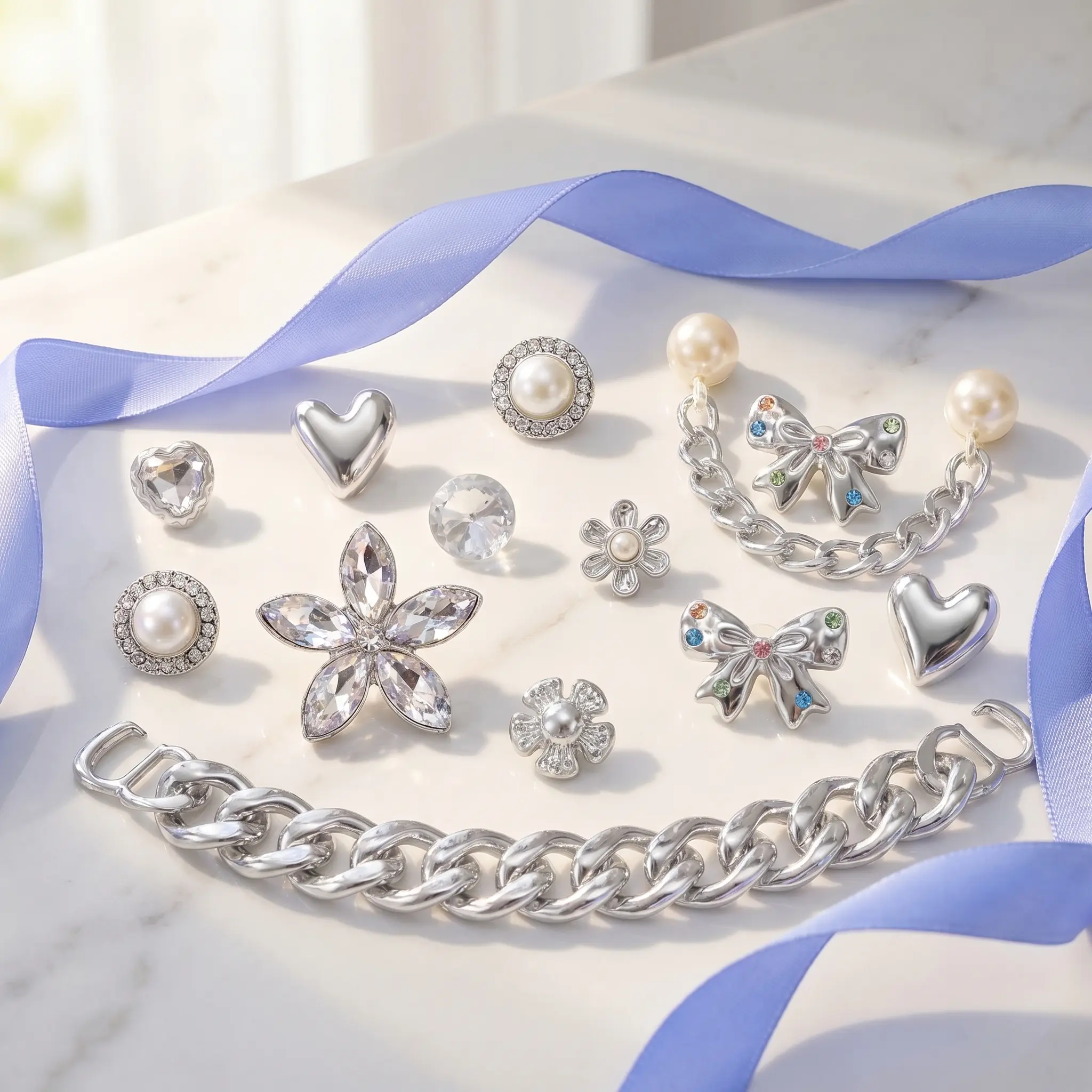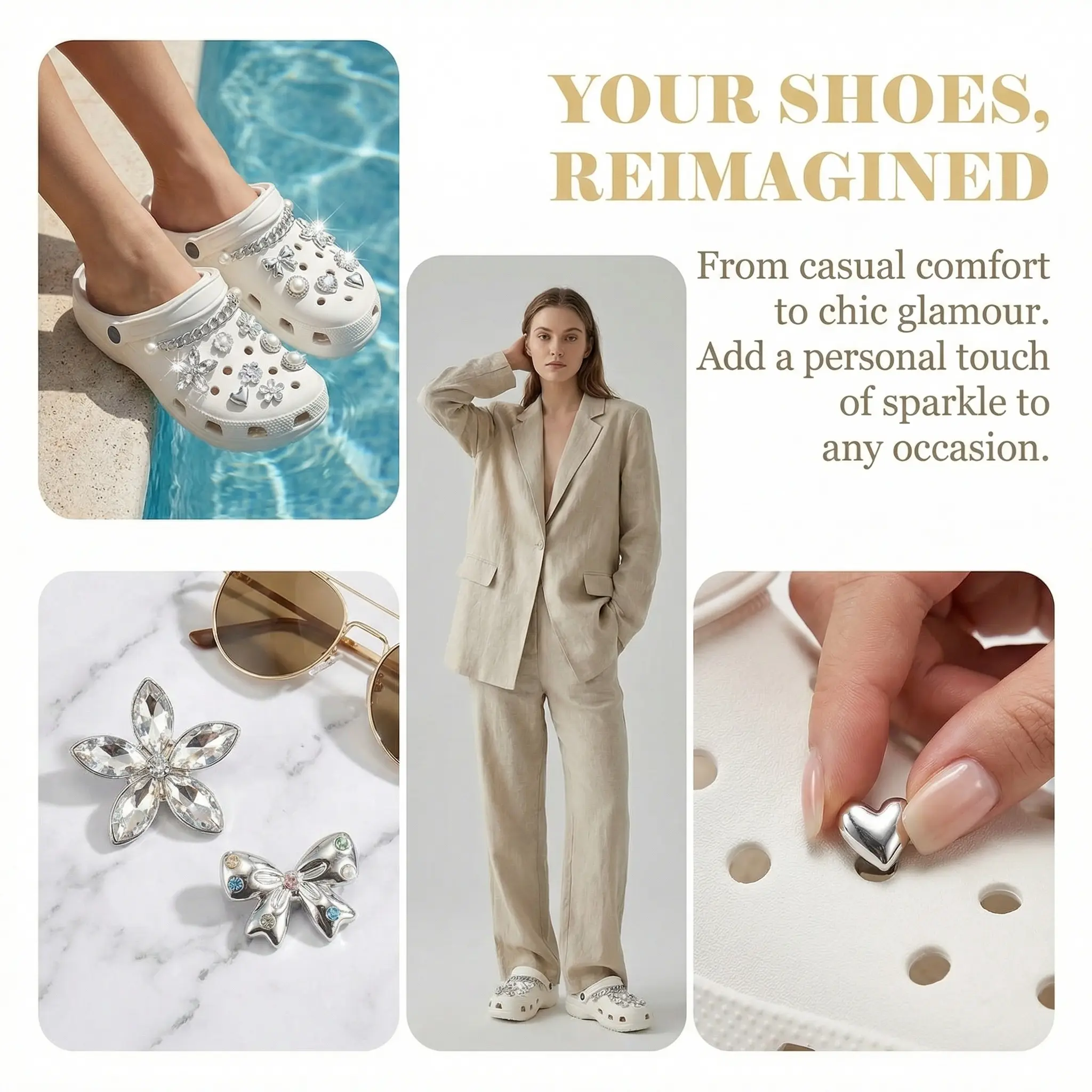 UNIQUE STYLE: Bling shoe charms fit for the holes of your clog shoes/sandals perfectly, and can be designed in various styles to suit your preference! Charming and charming accessory