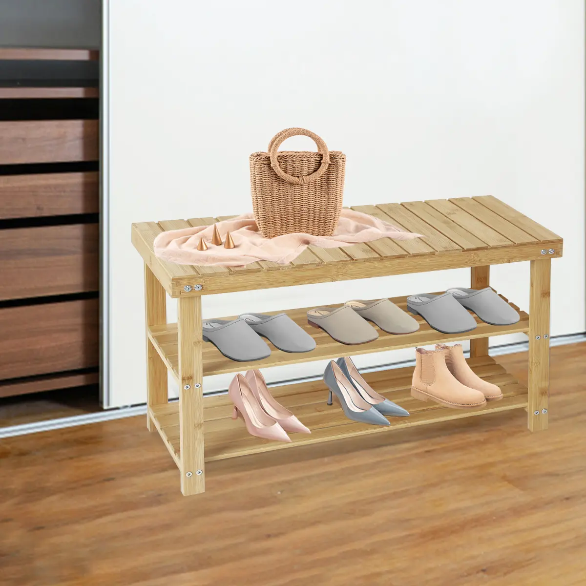 ·Our 3-tier shoe rack bench is made of natural pine wood, which is more durable and healthy for you to use in daily life.