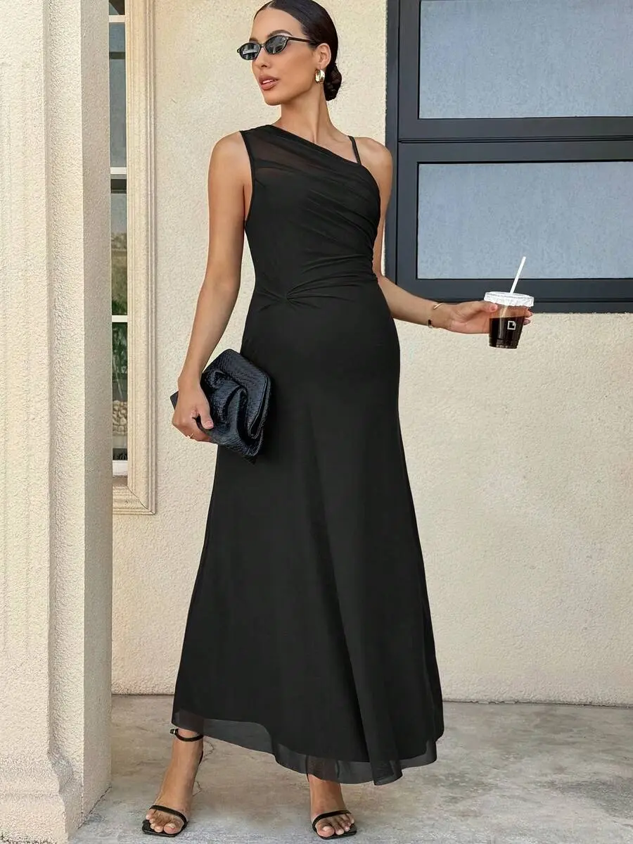 PUMIEY Women's Minimalist Bodycon Maxi Cami Dress Comfort Spaghetti Strap Womenswear Tight Dresses for Holiday Party Daily Wear Casual Sleeveless Dress Basic Ladies Clothing Lady Casual Wear Summer Summervibes