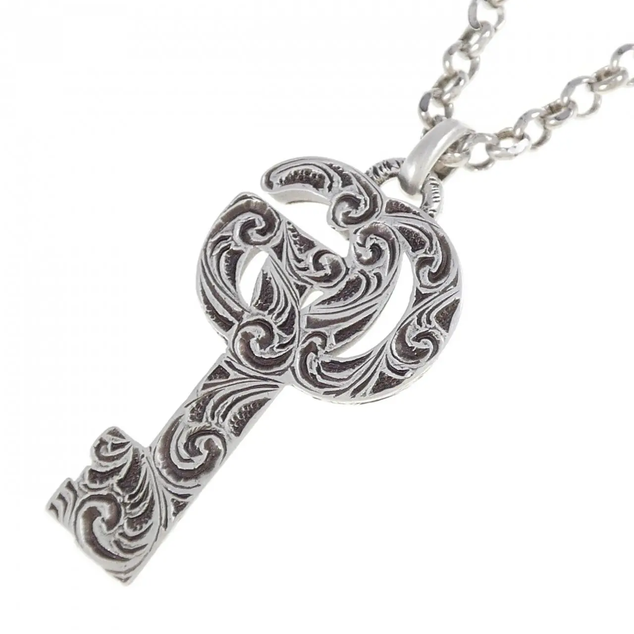 Pre-owned GUCCI Sterling Silver 925 (Ag925) Small Leather Goods Double G Key 925 Silver Necklace