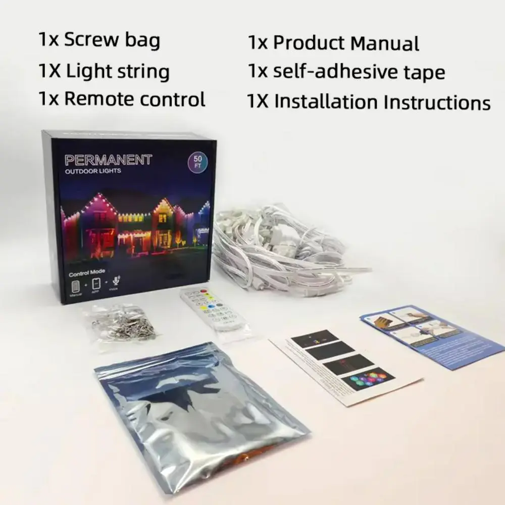 This 1-pack strip measures 15M with 30 high-brightness LEDs, delivering vibrant, dynamic RGB lighting that transforms your roof eaves, patio, garden, and exterior walls. Designed for DIY installation, it flexibly fits any layout while maintaining a clean, permanent look without frequent replacements.