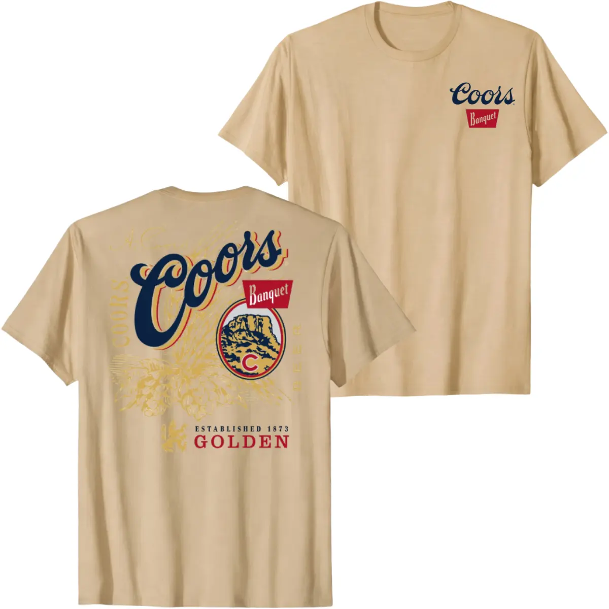 5. Coors Banquet Vintage Beer Logo Graphic T-Shirt with Retro Brewery Emblem Back Print, Classic Western Style Tee, Heritage Streetwear Unisex Summer Casual Shirt