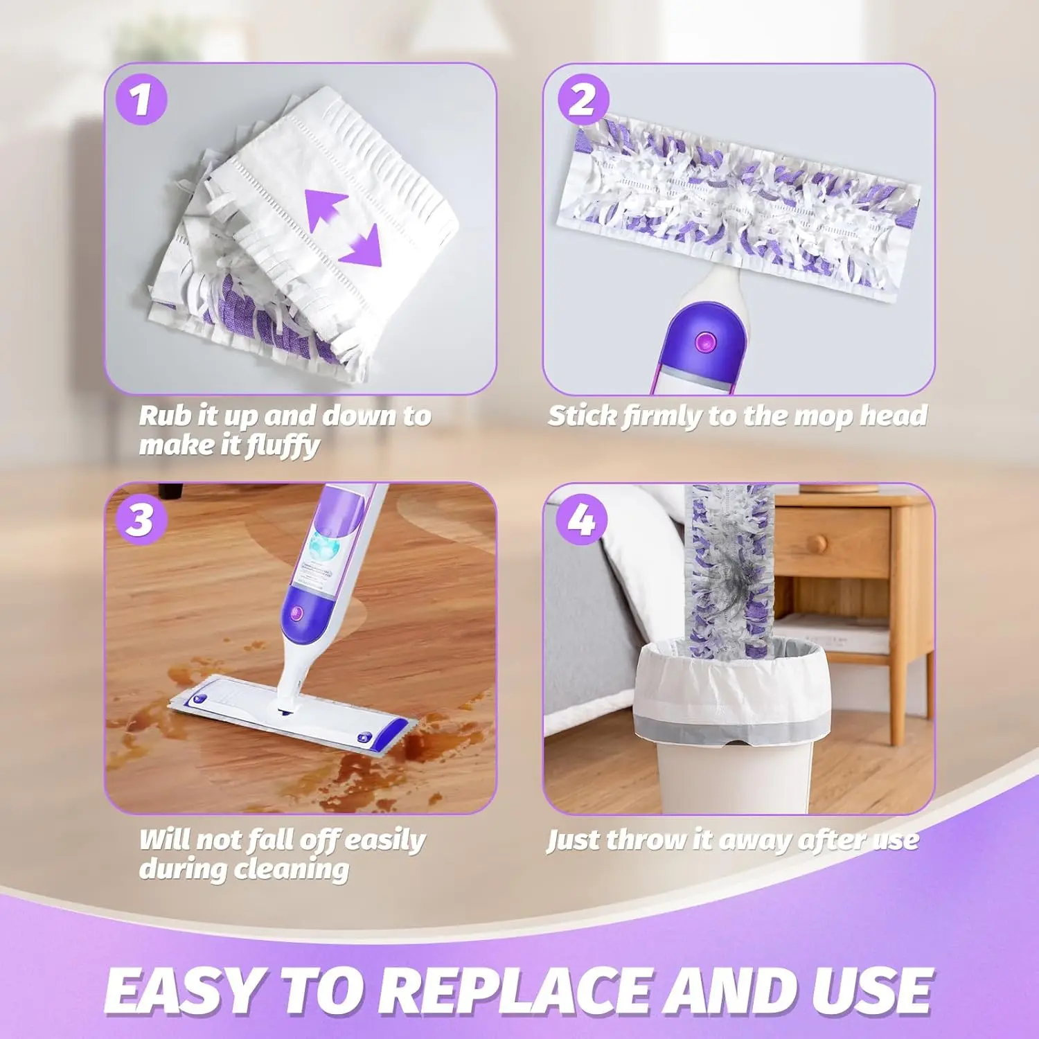 ·【Easy to Use】Get 10 disposable mop pads in one pack, ensuring long-lasting cleaning convenience. Dispose after use, without worrying about post-cleaning mess.