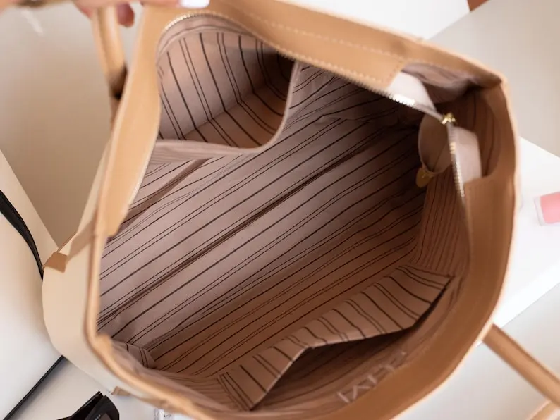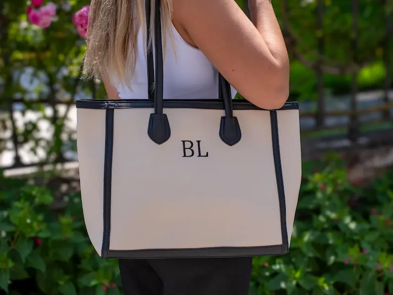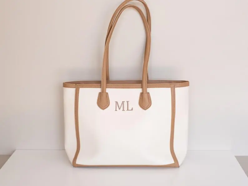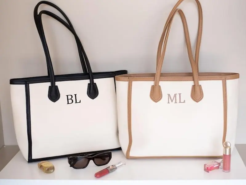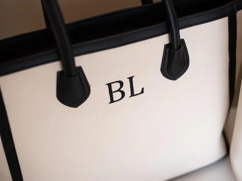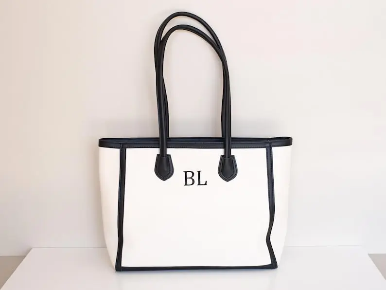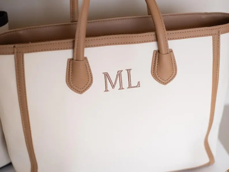 A perfect mix of style and function, this faux leather tote features a clean, modern design with custom embroidered initials for a personal touch ✨