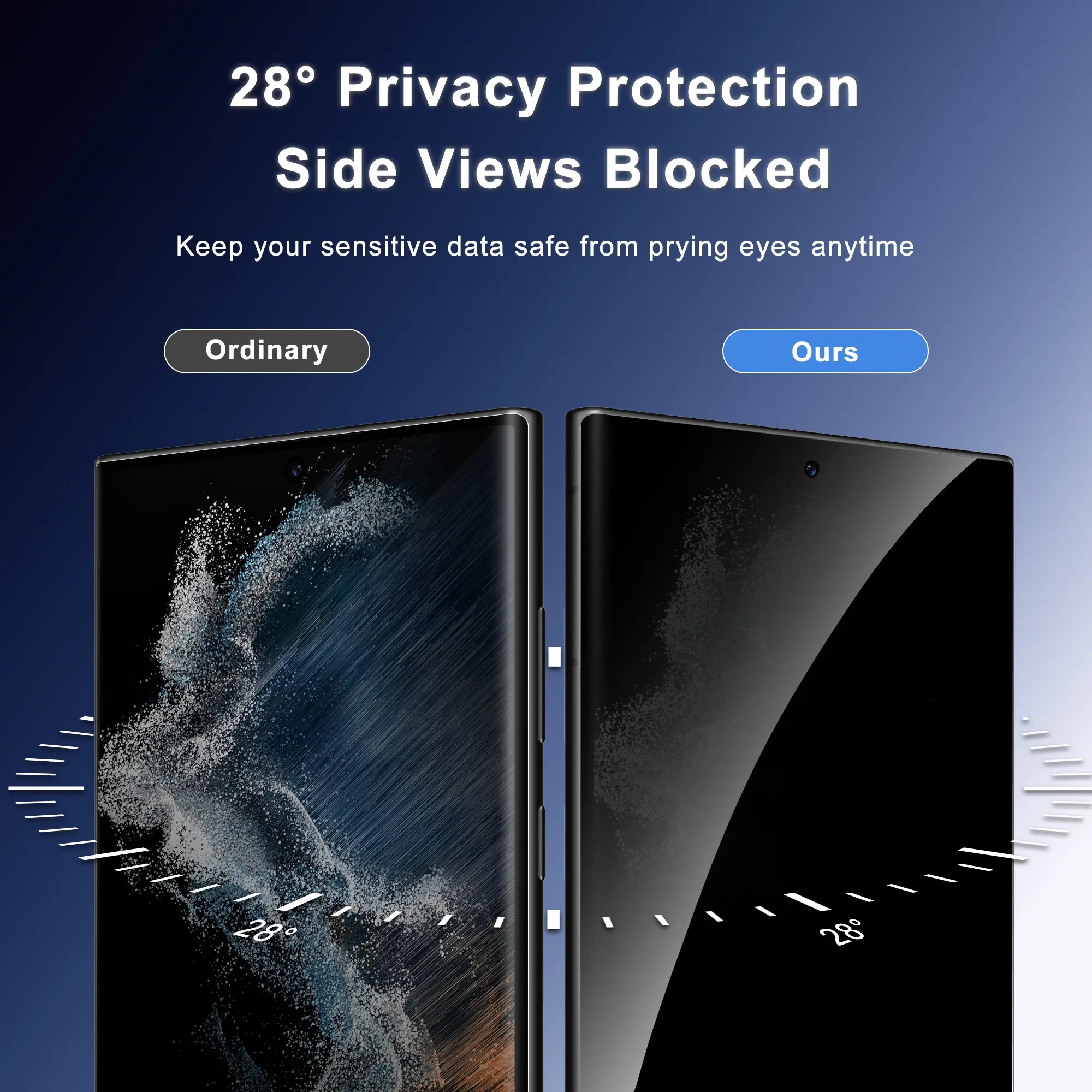 ·Stop Prying Eyes: 28 privacy screen protector for S22 Ultra / S23 Ultra can protect your privacy very well. Only people standing directly in front of the screen can see the screen. If someone is over your shoulder or looking from the side cannot make out text on your screen
