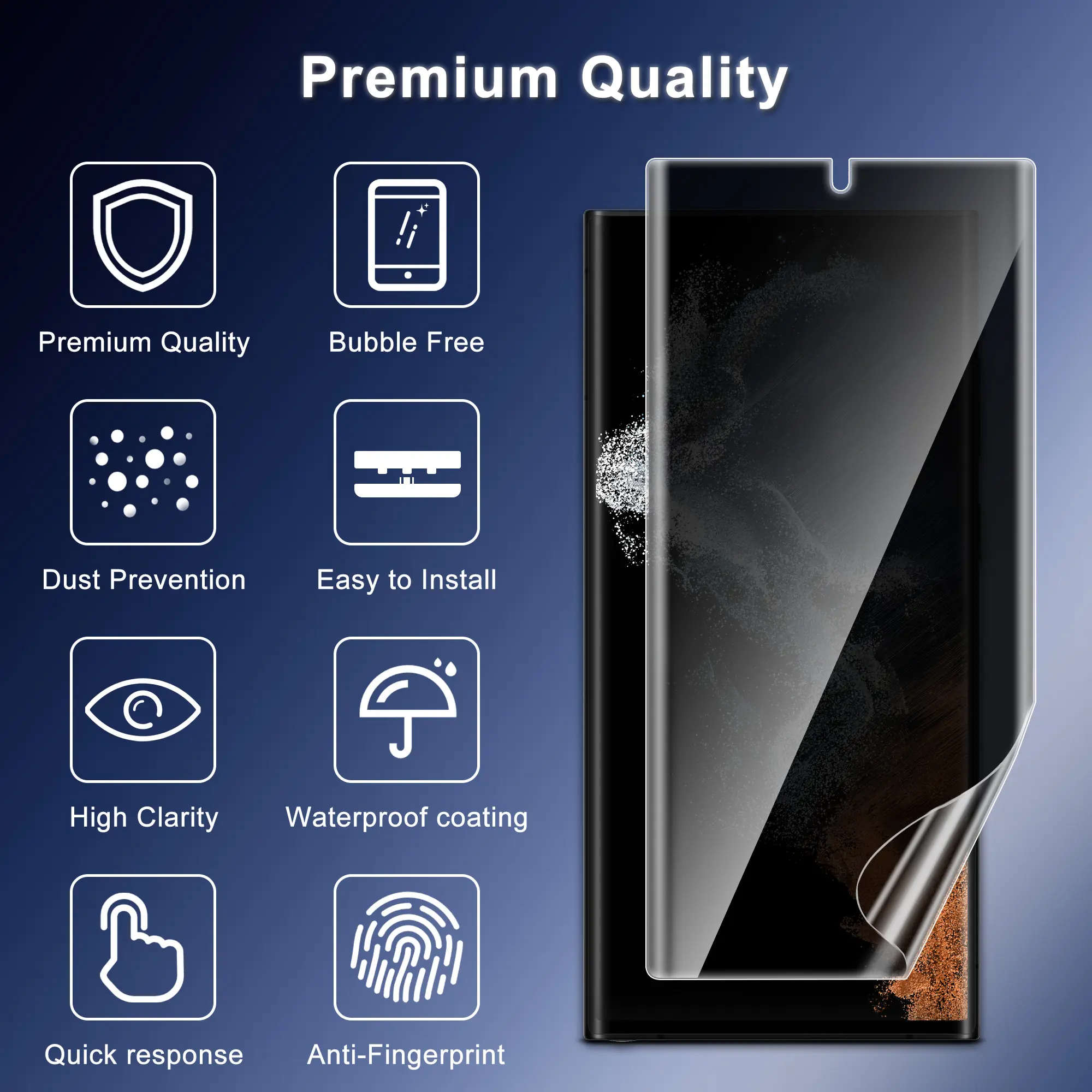 ·Dual Protection Screen & Fingerprint Unlock Ready: Samsung Galaxy S22 Ultra / S23 Ultra privacy screen protector covers of screen can protect your screen against dirt, dust, oil and sweat and unwanted scratches and friction. Ultra-thin design ensures fast touch response and seamless fingerprint unlock