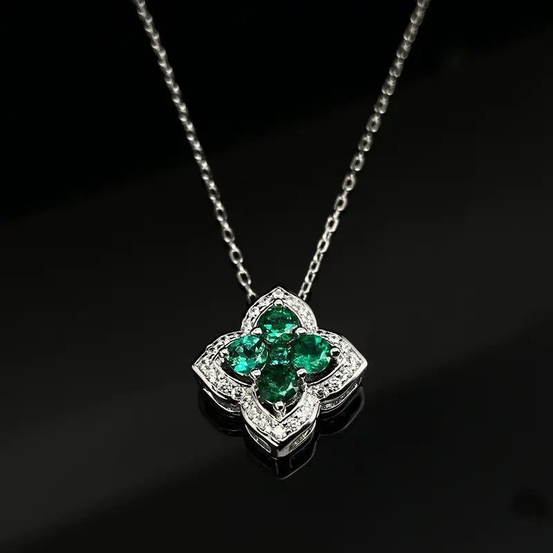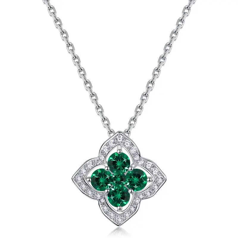 Elevate your jewelry collection with this stunning 4-leaf clover necklace, crafted from premium 925 sterling silver and adorned with brilliant lab-grown emeralds.