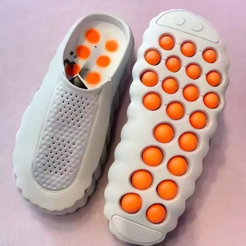 Key Features✅ Sensory Activation Technology22 independent foam nodes act like tiny pistons underfoot, moving freely to stimulate 4,000+ tactile receptors in your soles. This gentle, massage-like feedback activates key brain regions, sharpening your focus before competition and accelerating recovery afterward.✅ Breathable Perforated UpperA lightweight, molded upper with precision perforations ensures maximum airflow, keeping your feet cool and comfortable during extended wear. The seamless, sculpted design offers a snug, adaptive fit without sacrificing flexibility.✅ Futuristic Recovery DesignThe ripple-edged midsole and vibrant orange outsole pods deliver responsive cushioning and subtle ground feedback, while the open-back mule construction allows for quick, easy on/off—ideal for locker rooms, training facilities, or casual post-workout use.