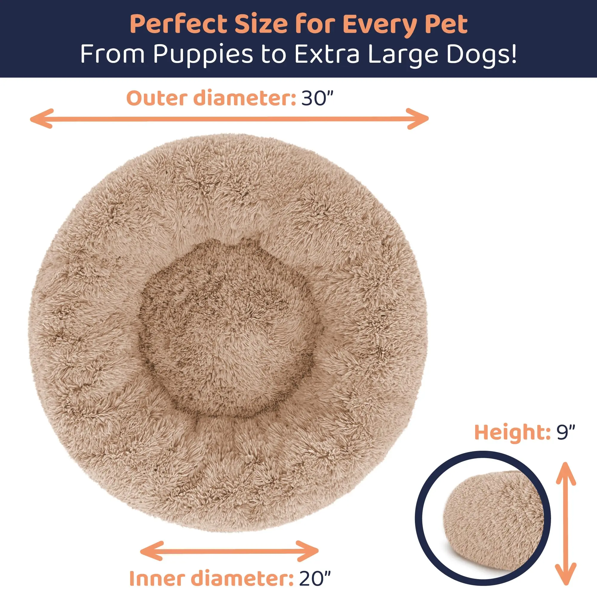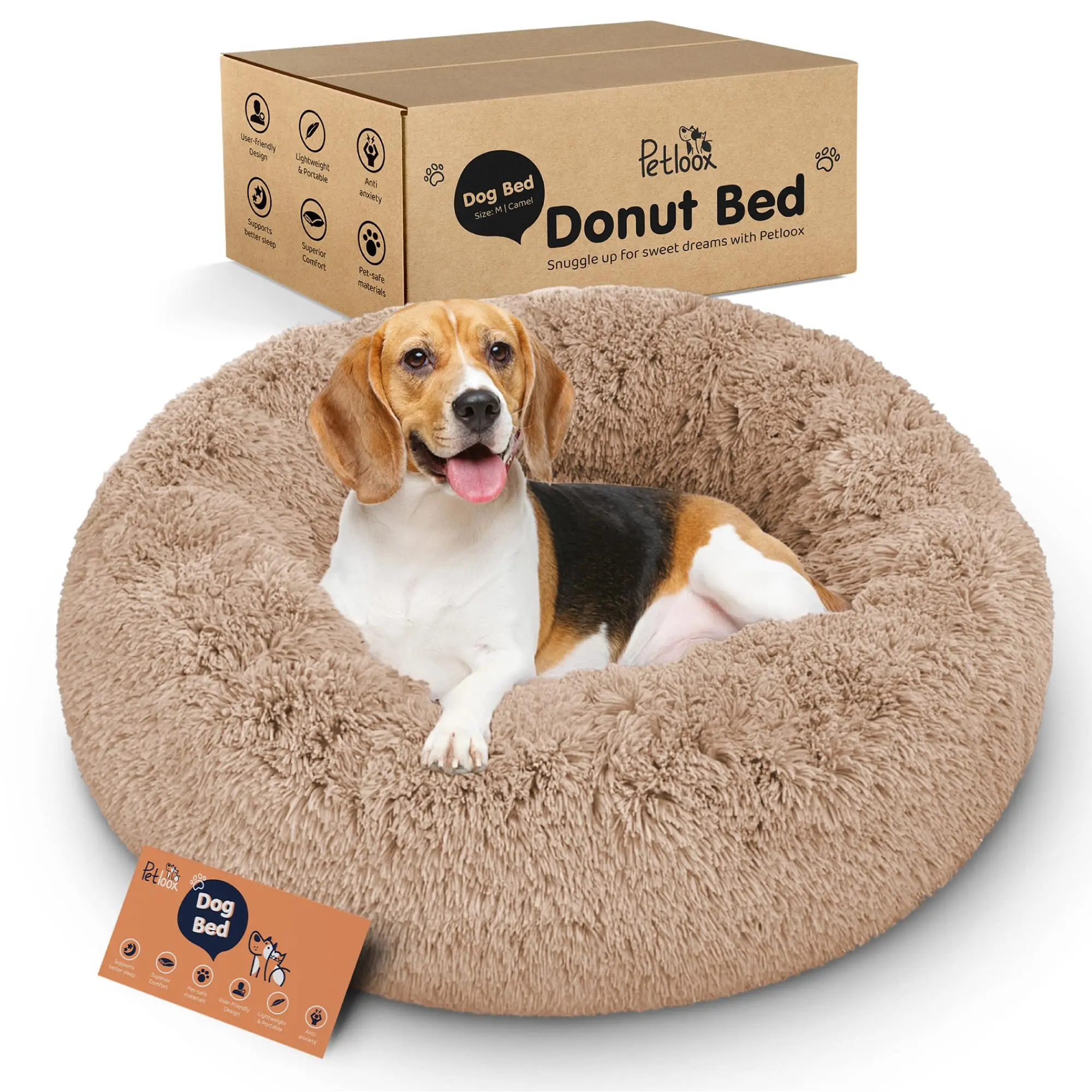 · Wrap Your Pet in Cloud- Like Comfort - Our Petloox dog donut bed is crafted with ultra-soft, shaggy plush materials that pets love to sink into, offering warmth and coziness for truly restful naps. Designed in sizes ranging from Small to XL, it provides a snug, inviting spot for tiny puppies, toy breeds, and larger dogs alike, making it the perfect everyday retreat for any furry friend.Built to Last, Exceptional Value - Crafted with high-quality, durable materials, our Petloox dog bed round offers unbeatable longevity and resilience. Designed to outlast and outperform other brands, it provides lasting comfort and incredible value for both you and your pet! Available in multiple sized options, including Small, Medium, and Large, to ensure the perfect size for every pet.Calming Haven for Anxious Pets - Our Petloox anxiety dog bed is designed to create a soothing, secure environment that helps reduce pet anxiety. Its cozy, nest-like shape promotes relaxation, making it the perfect retreat for pets who need extra comfort and reassurance. This cuddler bed is ideal for dogs and even your cat, offering a furry, ultra-soft escape from daily stress.Elegant Design That Complements Any Home - Our Petloox dog calming beds aren't just cozy retreats for your pets, they're stylish additions to your home decor. With their modern, minimalist design and premium plush fabric, these circular, shaggy round dog beds seamlessly blend into any space, making comfort look as good as it feels.3-Year Warranty & A Thoughtful Gift for Pet Lovers - Our Petloox calming bed for dogs makes a thoughtful gift for small, medium, and large dogs. Backed by a durable 3-year guarantee, it ensures lasting comfort and premium quality. Whether you’re shopping for a puppy, a large breed, or even a cat, this bed is a versatile option for every pet owner.