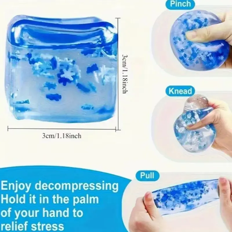 Slow Rise Stress Balls - Square Ice Cube with Snowflakes Inside, Sensory Fidget Toys for Anxiety Relief in Adults & Kids, Soft Squishy, Calming Squishy for Classroom Prizes & Office Desk, Relaxation Gift