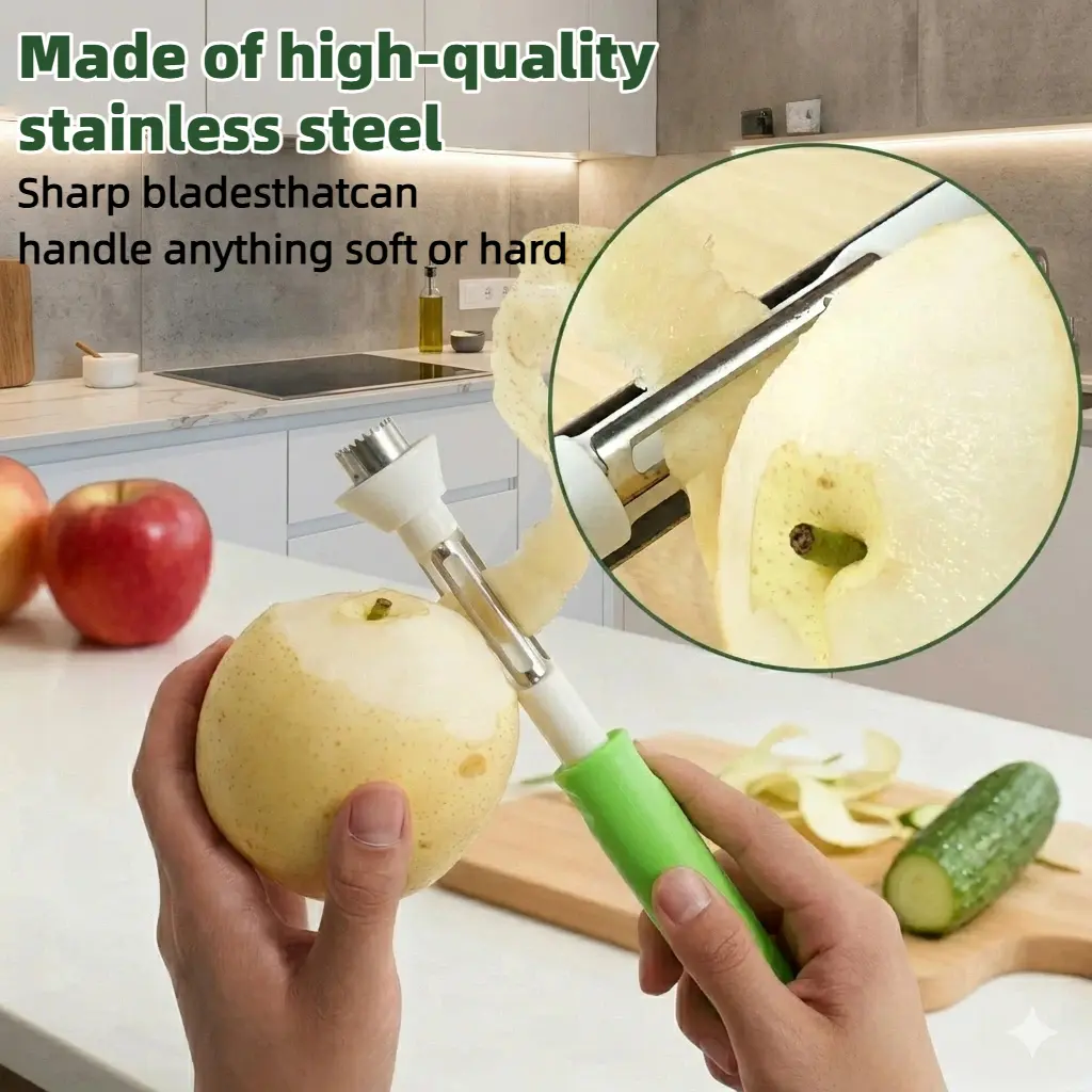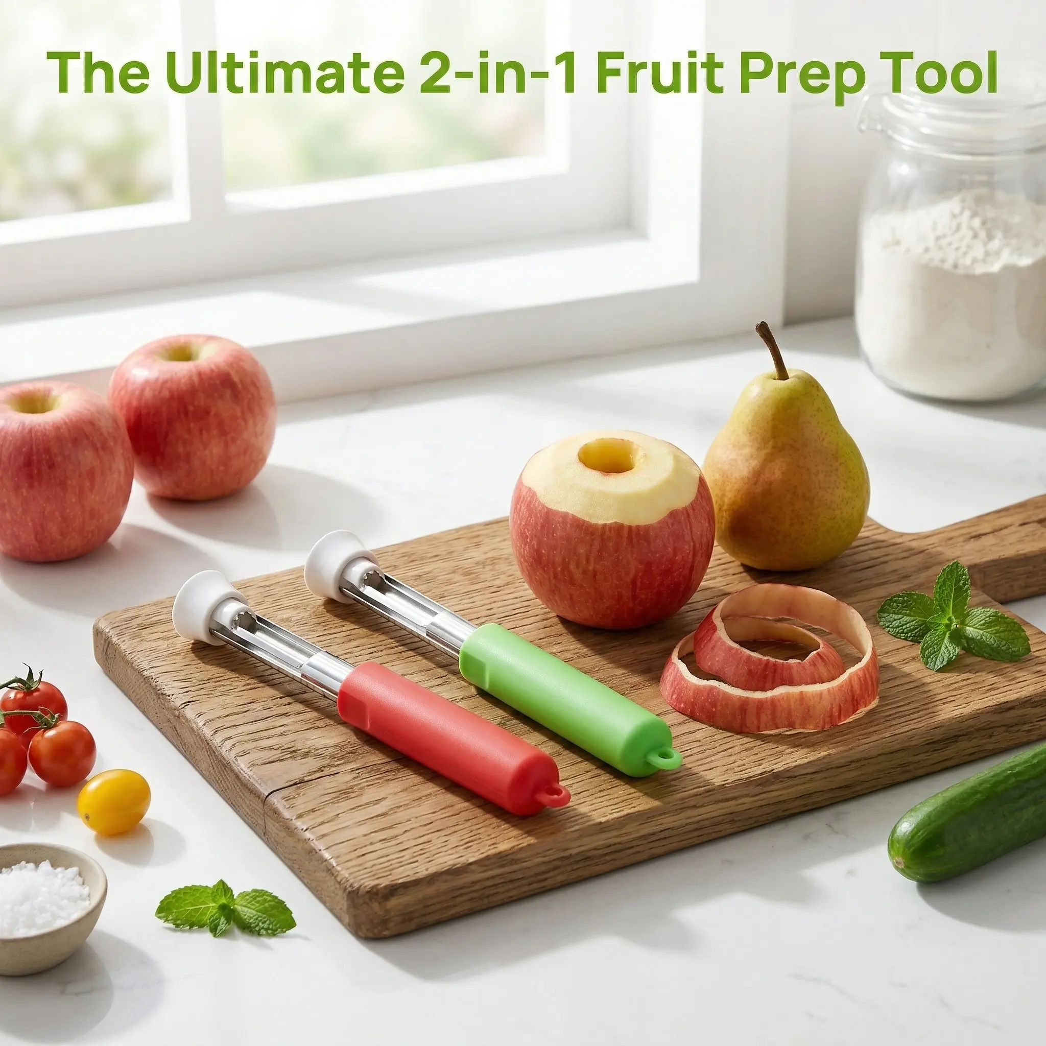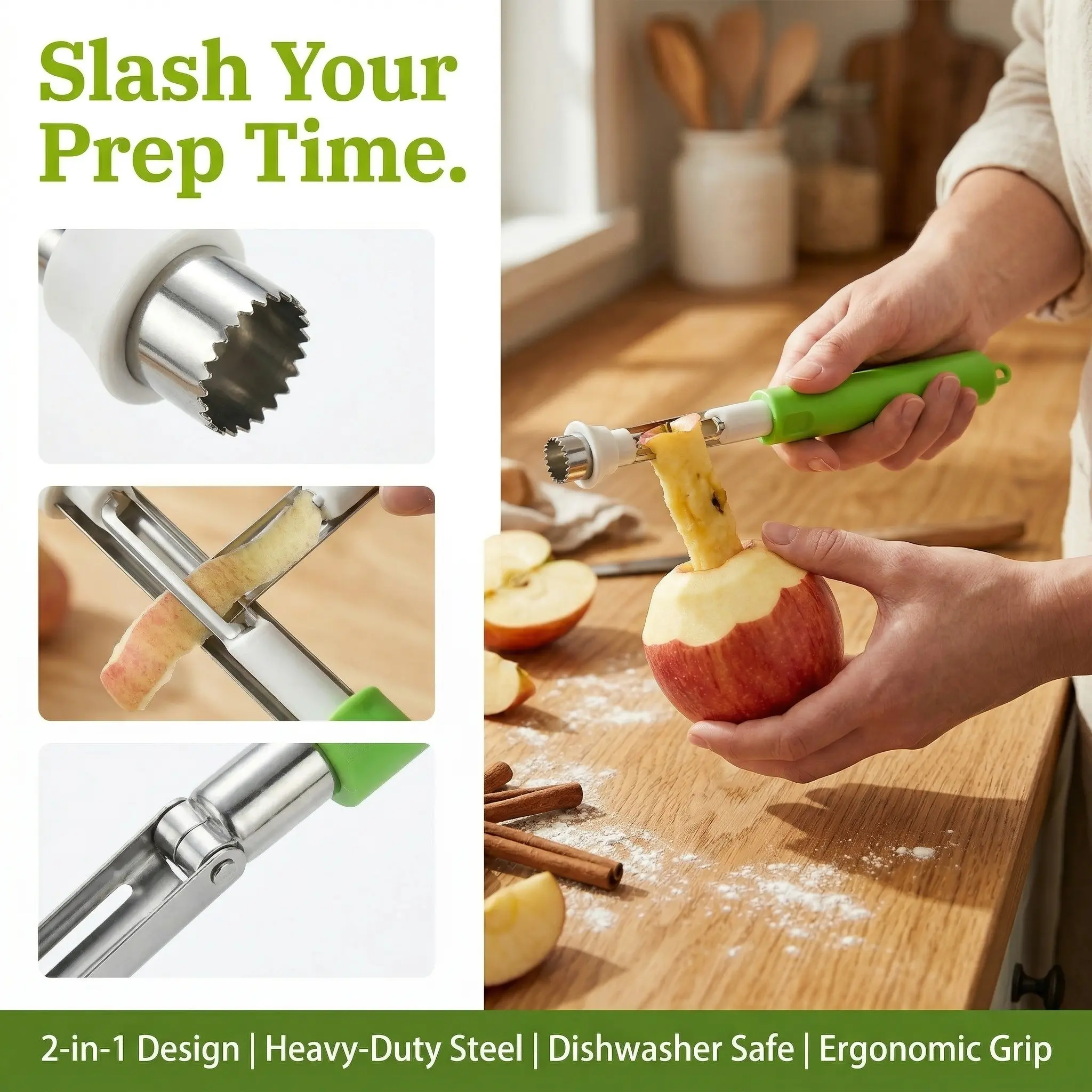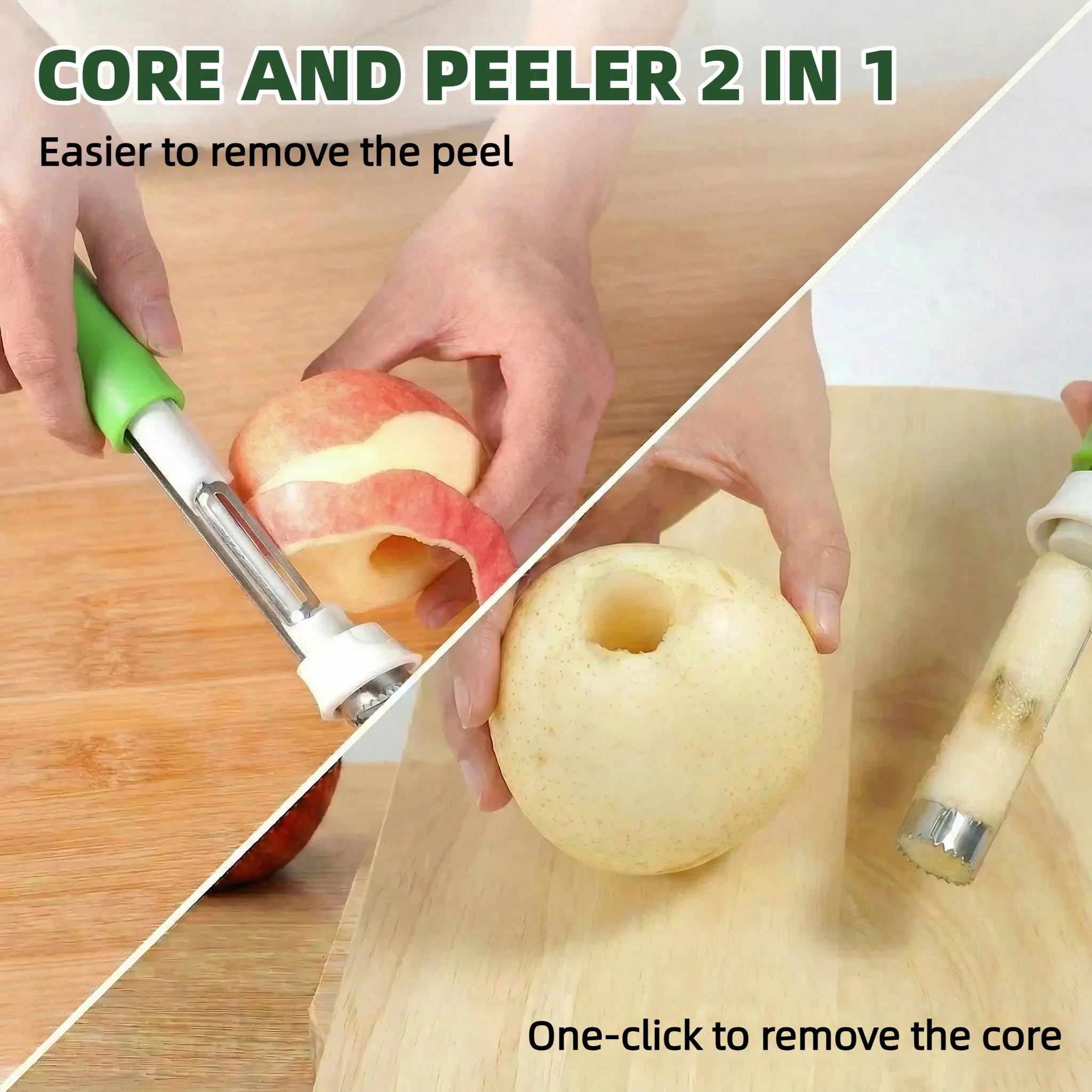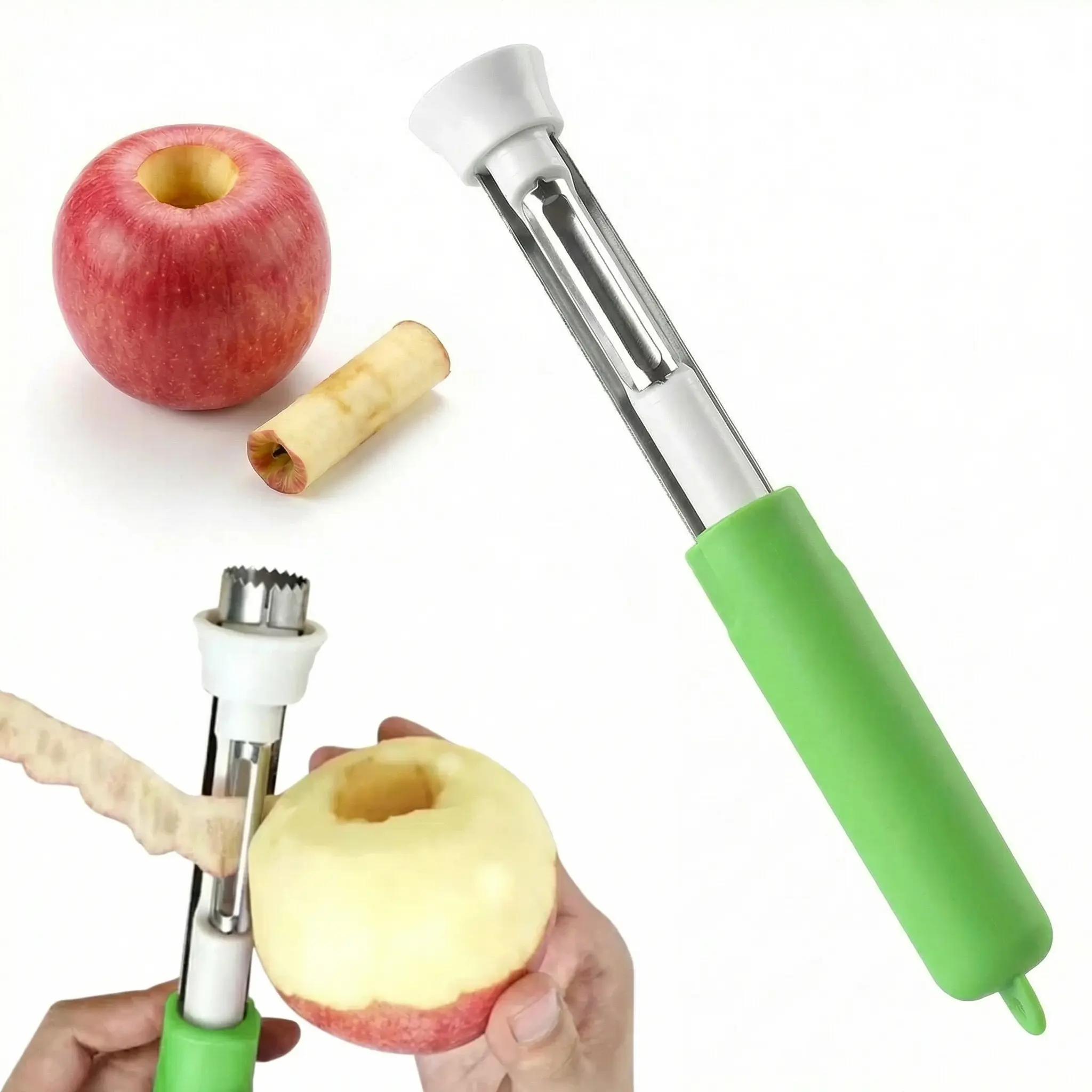 Tired of juggling a corer and a peeler for apples and pears? This all-in-one gadget does both jobs in seconds. Just twist to remove cores, then flip to peel—no more switching tools or wasting time. Perfect for busy mornings, meal prep, or baking pies without the hassle.