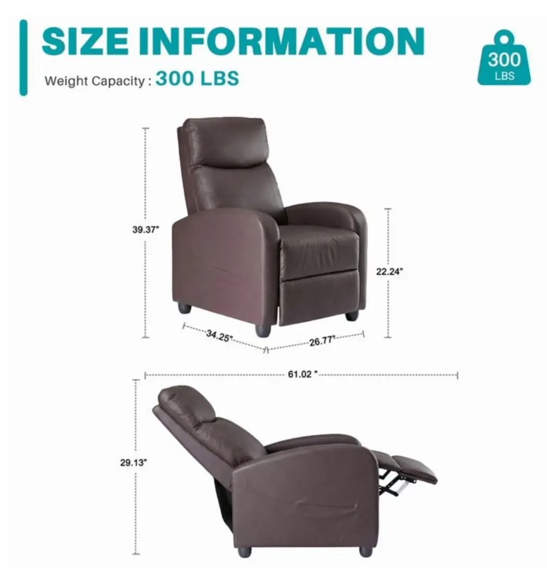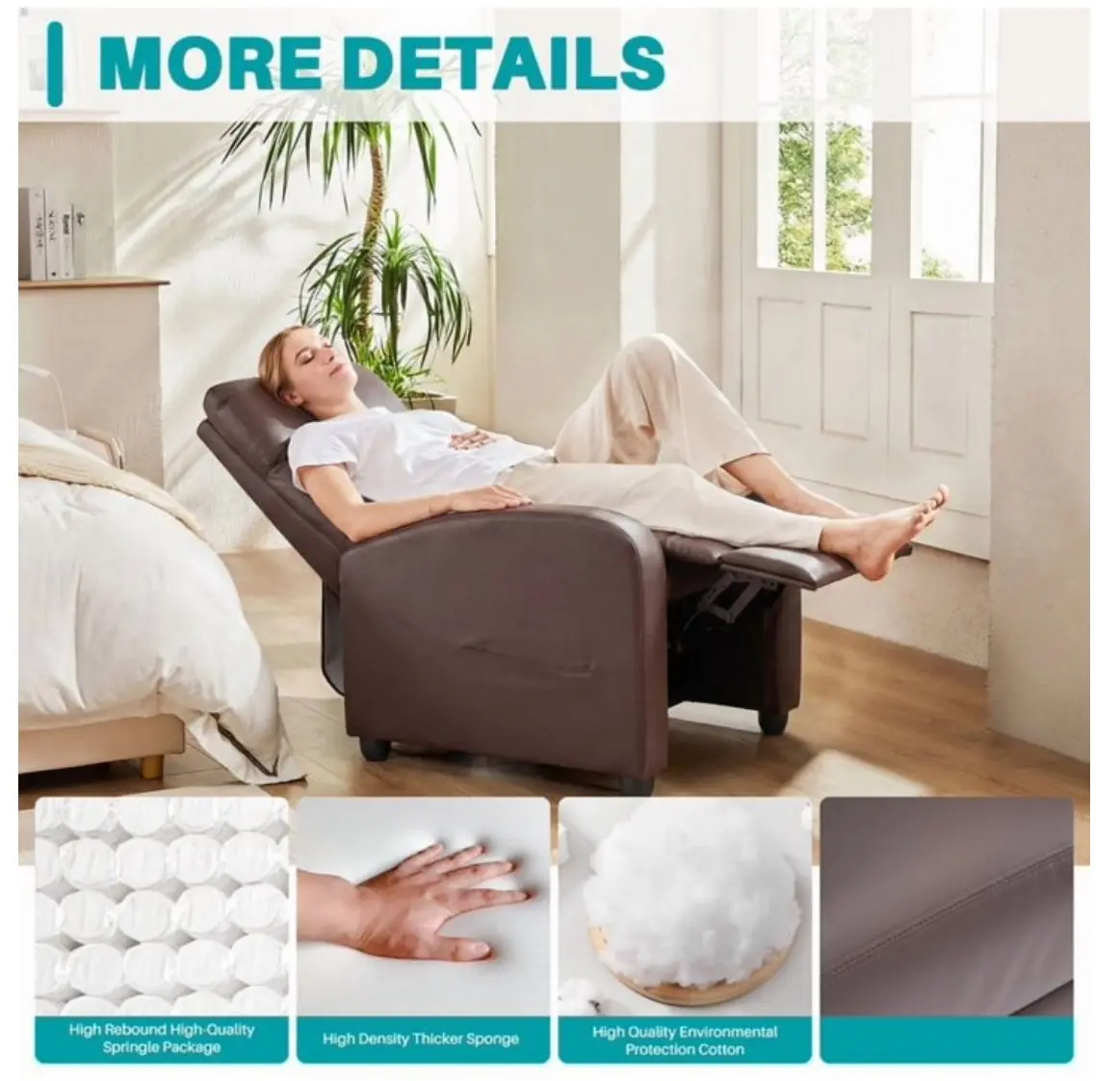·Space-Saving Design: Maximize your living space with the compact yet spacious Recliner Chair, offering a full reclining feature without taking up excessive floor space.