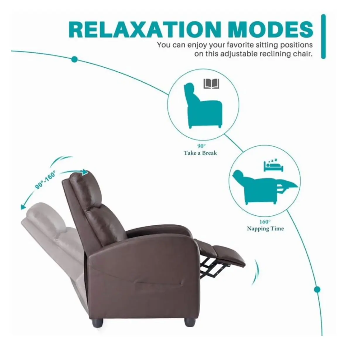 ·Easy Recline: Adjust your chair effortlessly to your preferred position with a simple recline mechanism for reading, watching TV, or taking a nap in ultimate comfort.