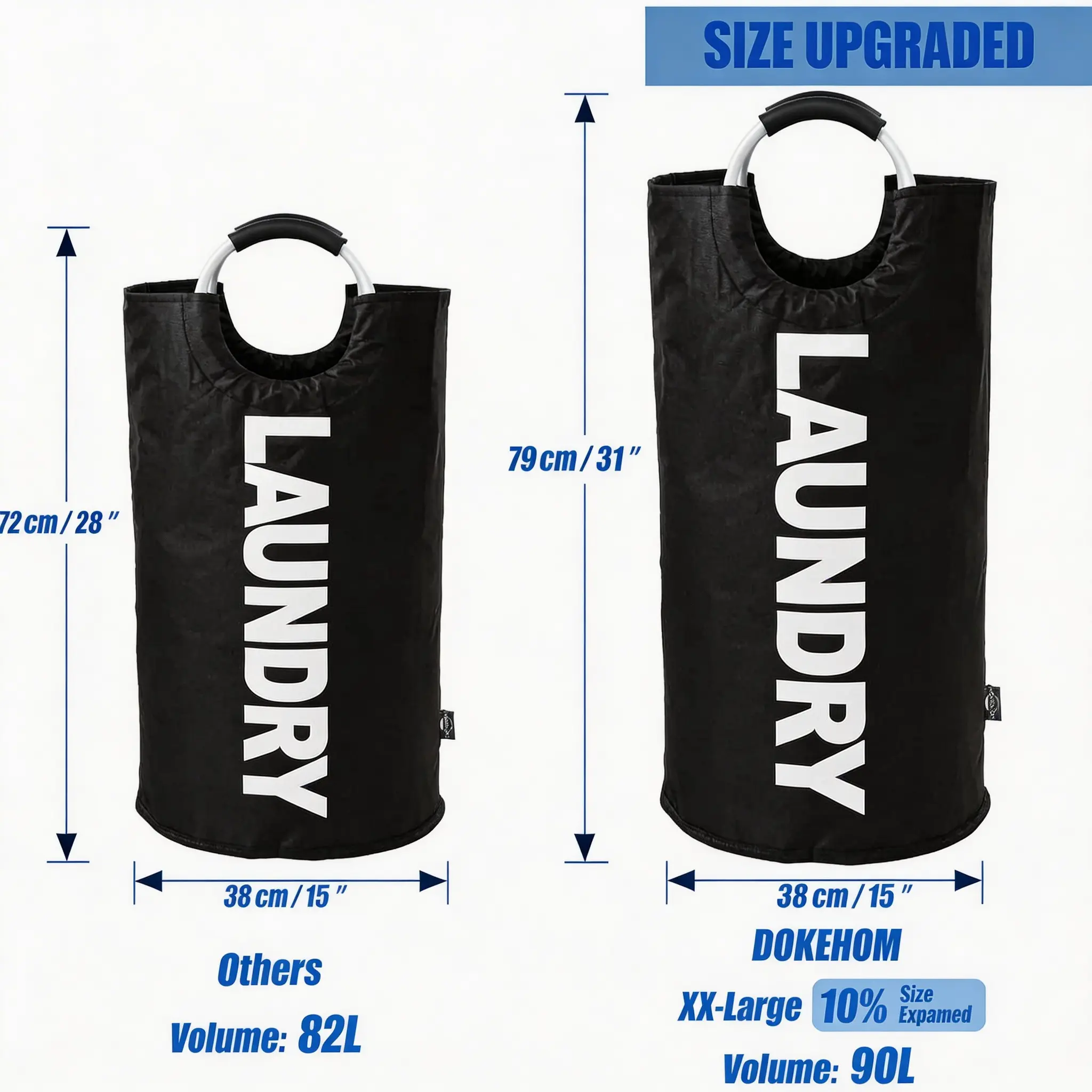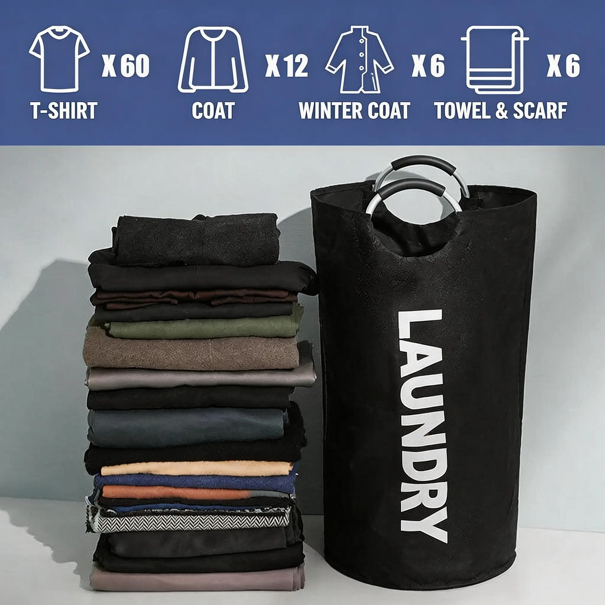 ·Set of 2 Large-Capacity Hampers – This dual pack gives you the ultimate convenience. Perfect for sorting lights and darks, or placing one in the bedroom and one in the laundry room. Enjoy double the organization without double the effort.