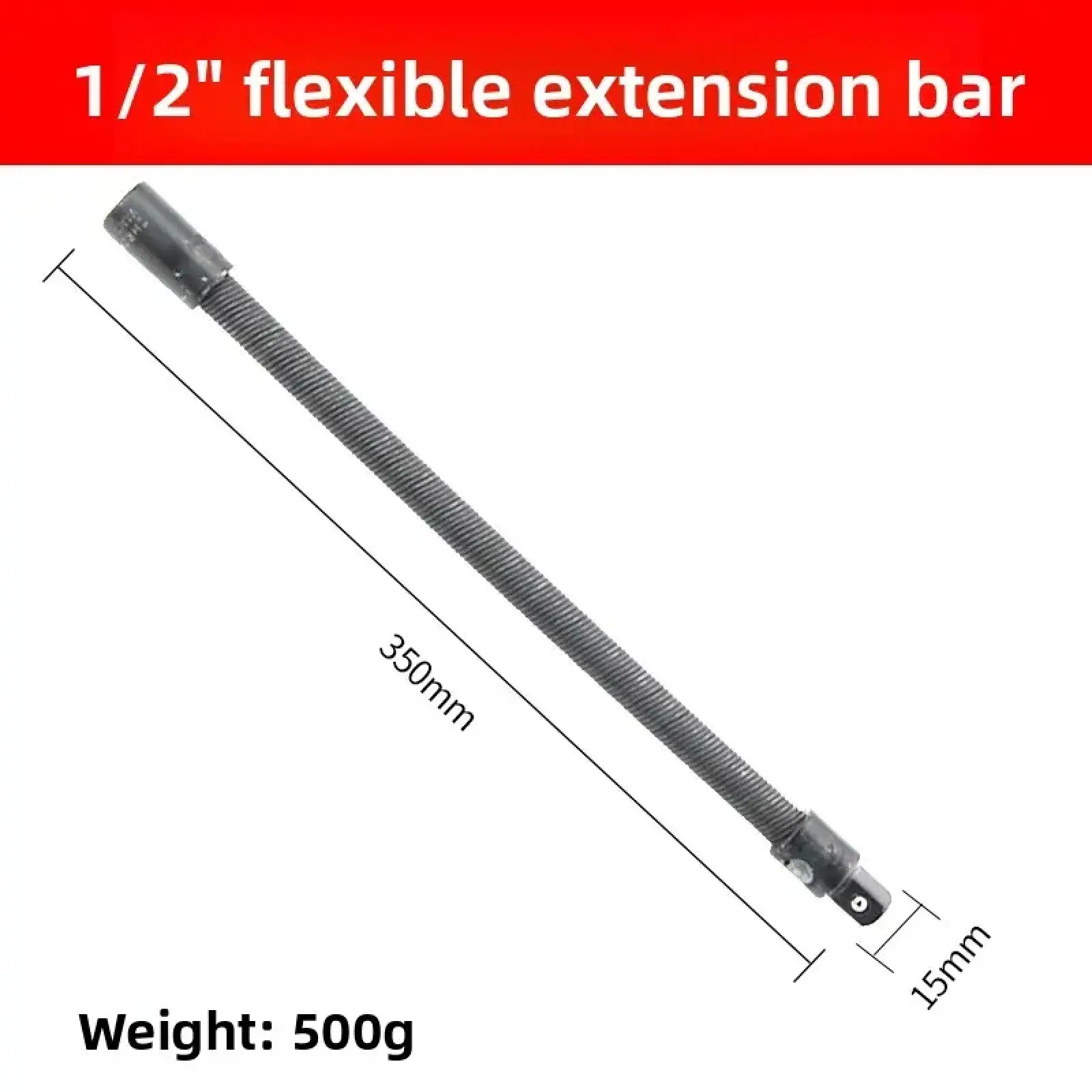 1/2 Inch Flexible Extension Rod Impact Resistant Swivel Socket Extension Bar Automotive Repair Wrench Accessory.