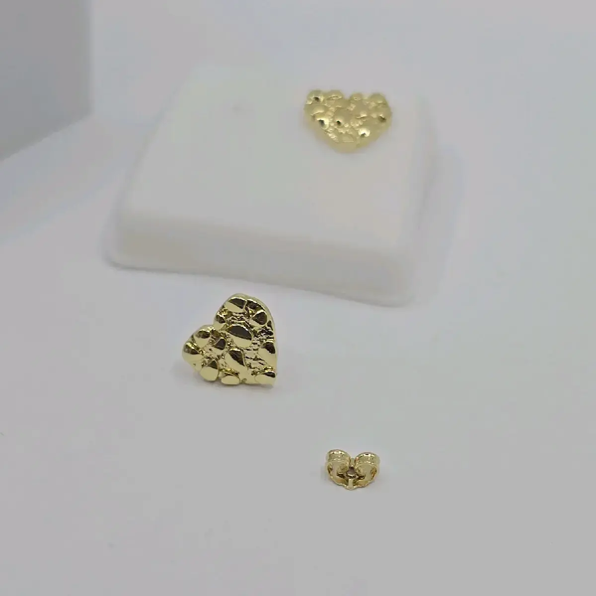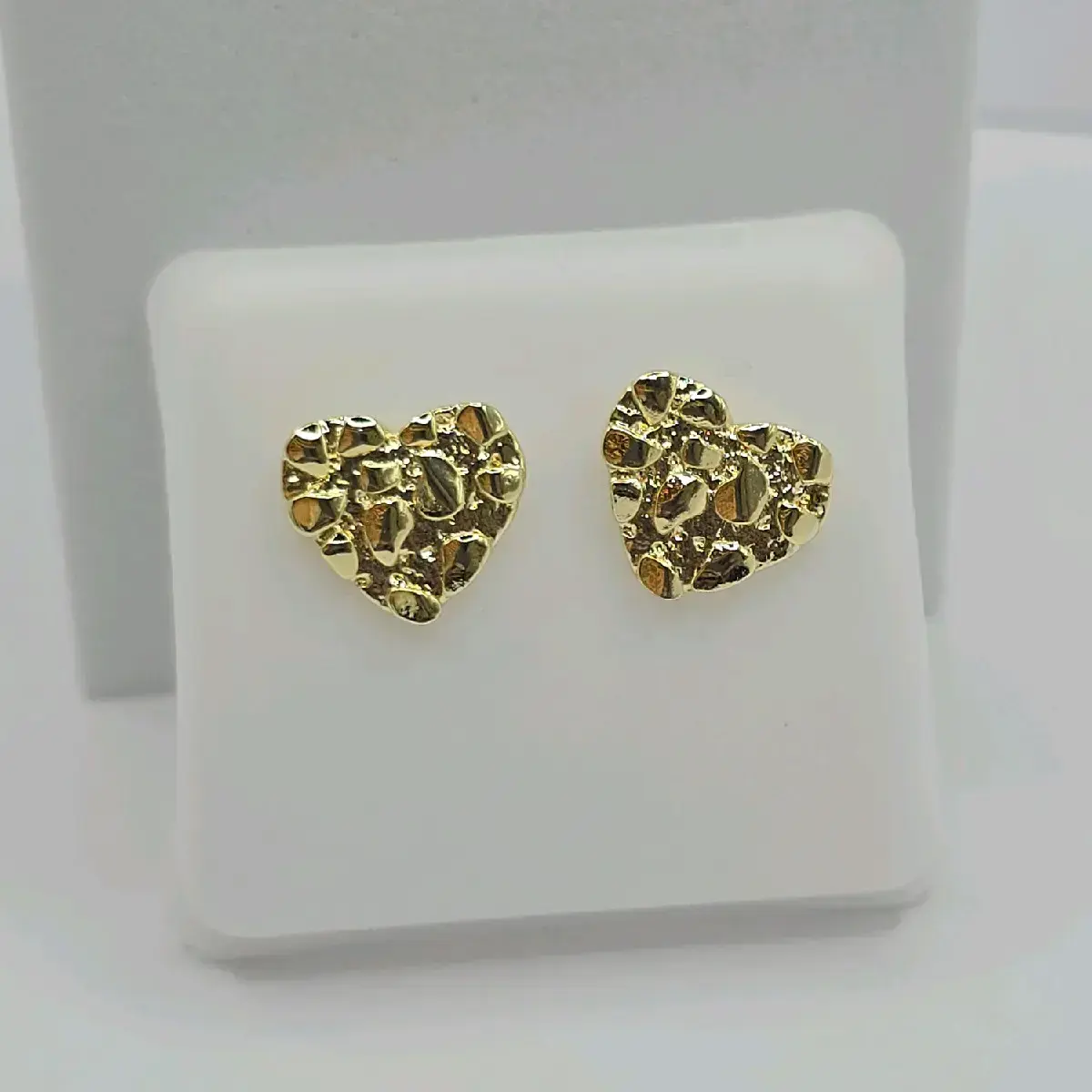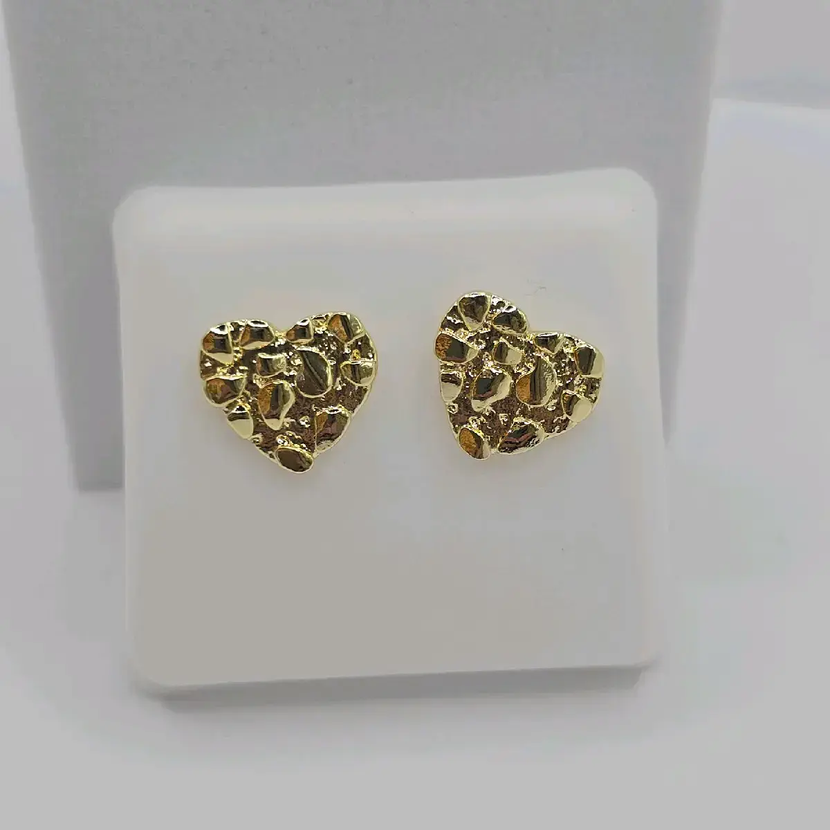 Introducing our heart-shaped NUGGET stud earrings, a perfect addition to your jewelry collection. These earrings are designed in a heart style, adding a unique and stylish touch to your outfit. The gold-plated material used in the earrings provides a luxurious and elegant look, making them perfect for any occasion.